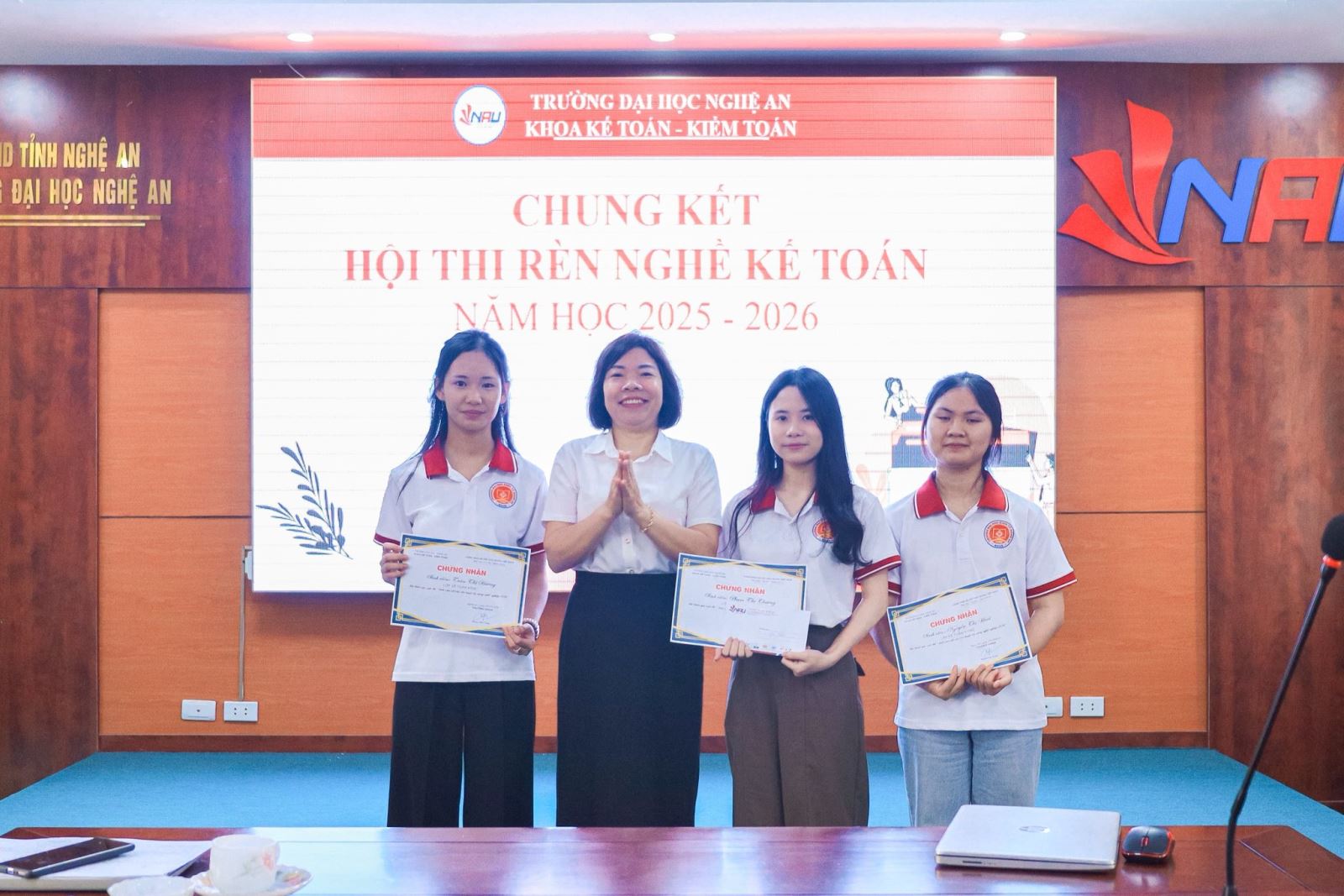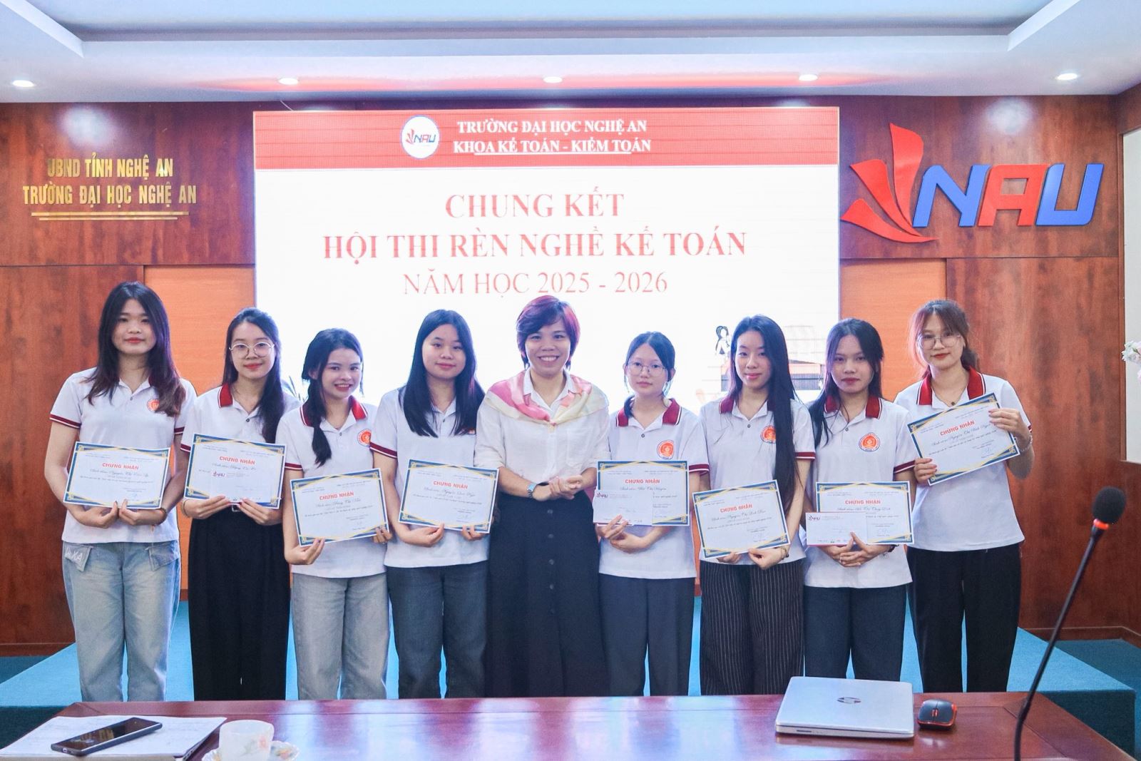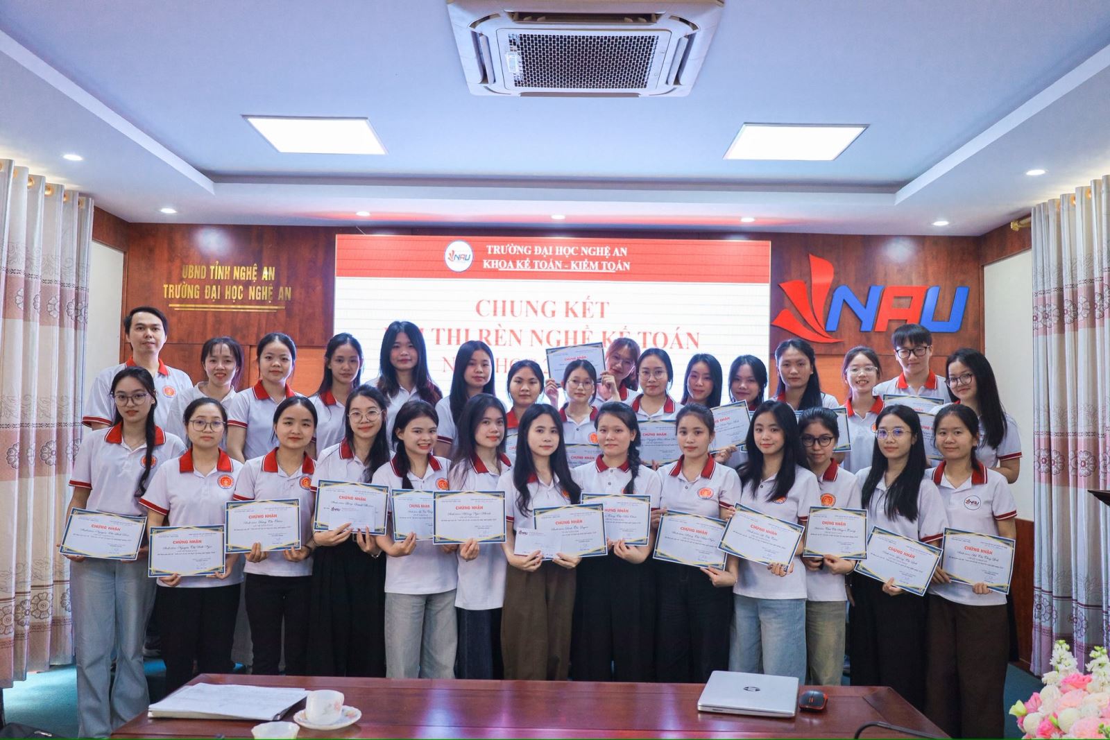Hành trình 6 tháng rèn luyện đầy nỗ lực của sinh viên Khoa Kế toán – Kiểm toán, Trường Đại học Nghệ An đã chính thức khép lại với Chung kết Hội thi rèn nghề 2026 vô cùng sôi nổi và ý nghĩa . Sau những phần thể hiện xuất sắc, Ban tổ chức xin chúc mừng các đội thi đã đạt giải: