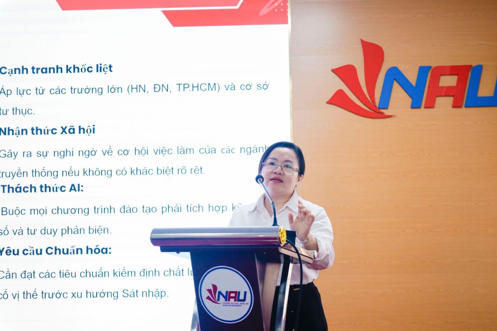 Hội nghị đã tiến hành thảo luận, trao đổi với nhiều ý kiến tâm huyết, qua đó đưa ra nhiều giải pháp, định hướng mới trong công tác tuyển sinh năm 2026, trong đó khoa Kế toán - kiểm toán tham gia với tham luận "Giải pháp nâng cao công tác tuyển sinh tại Trường Đại học Nghệ An năm 2026 và những năm tiếp theo". Với những kết quả đạt được trong công tác tuyển sinh năm 2025, tập thể sư phạm nhà Trường sẽ tiếp tục nỗ lực, quyết tâm hướng đến một mùa tuyển sinh 2026 với những thành công cao nhất, góp phần thực hiện nhiệm vụ đào tạo nguồn nhân lực chất lượng cao phục vụ cho sự phát triển kinh tế - xã hội.