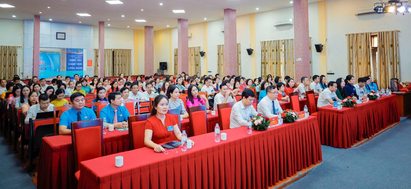 Đến dự Đại hội có Bà Trần Lệ Thi – Chủ tịch Công đoàn phường Vinh Phú; TS. Nguyễn Đình Tường – Bí thư Đảng ủy, Chủ tịch Hội đồng trường; các Phó Hiệu trưởng gồm TS. Trần Anh Tư, TS. Trương Quang Ngân, TS. Đàm Thị Ngọc Ngà; cùng các đại biểu đoàn viên tiêu biểu đến từ các tổ công đoàn trực thuộc. Chủ trì Đại hội là TS. Đặng Thị Thảo – Chủ tịch Công đoàn Trường.