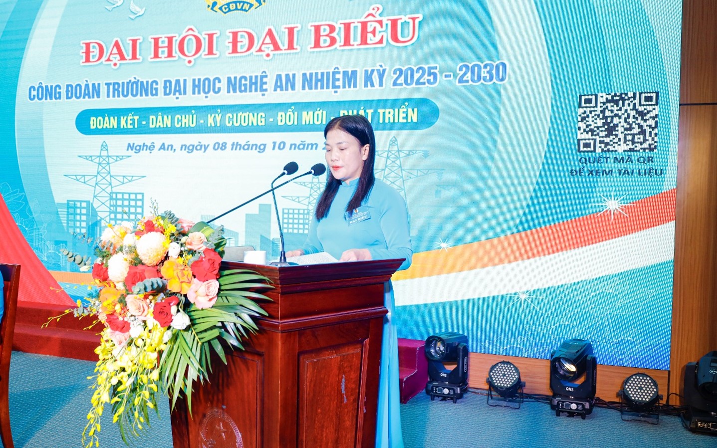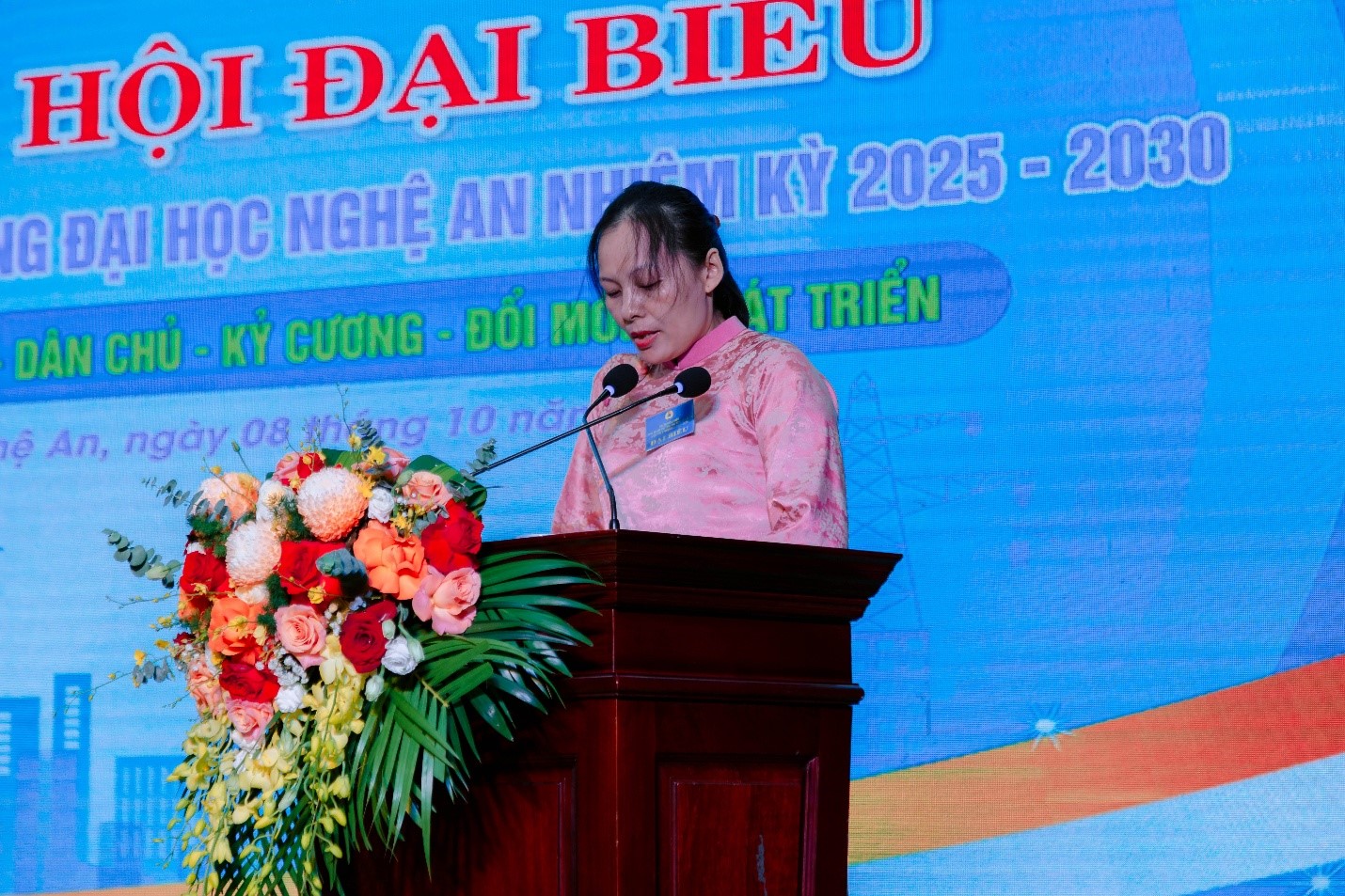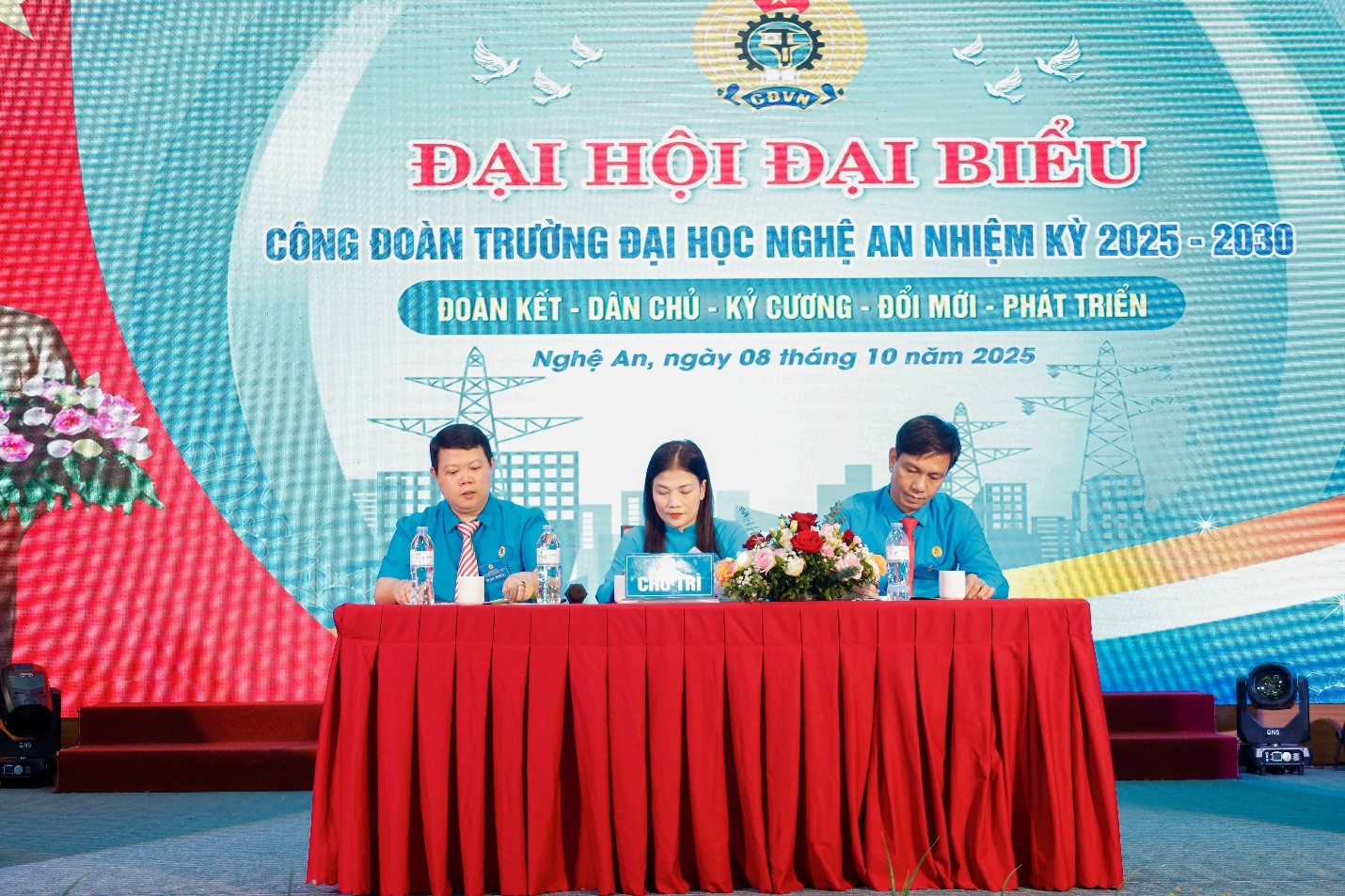 Ngày 08 tháng 10 năm 2025, tại Trường Đại học Nghệ An đã long trọng diễn ra Đại hội Công đoàn lần thứ I, nhiệm kỳ 2025–2030. Đây là sự kiện chính trị quan trọng, đánh dấu bước phát triển mới của tổ chức công đoàn sau quá trình sáp nhập và tái cấu trúc, đồng thời thể hiện tinh thần đoàn kết, dân chủ, đổi mới và phát triển của tập thể viên chức, người lao động toàn trường.