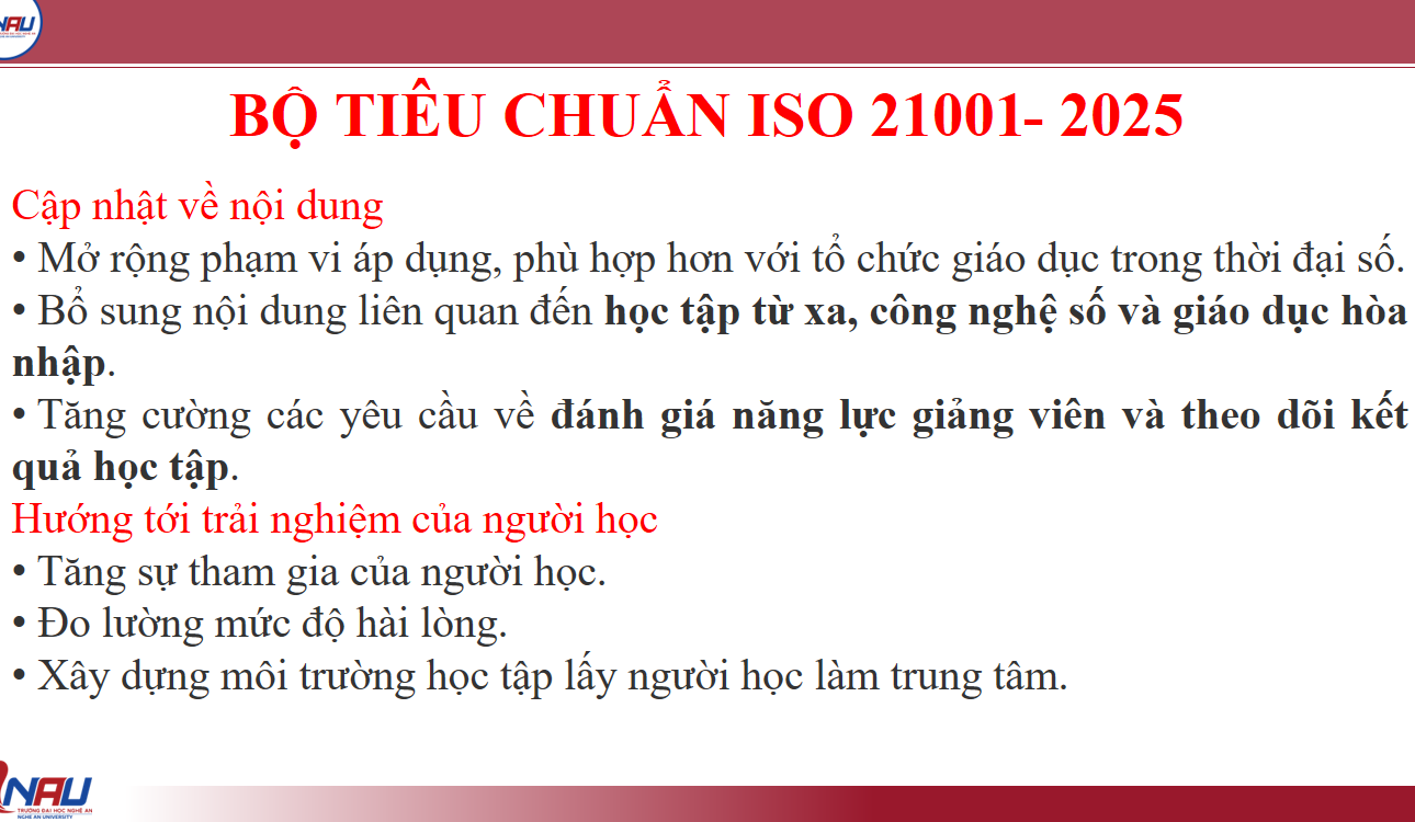 Trường Đại học Nghệ An triển khai Hệ thống quản lý chất lượng ISO 21001 cho khối Phổ thông và Mầm non Thực hành Sư phạm