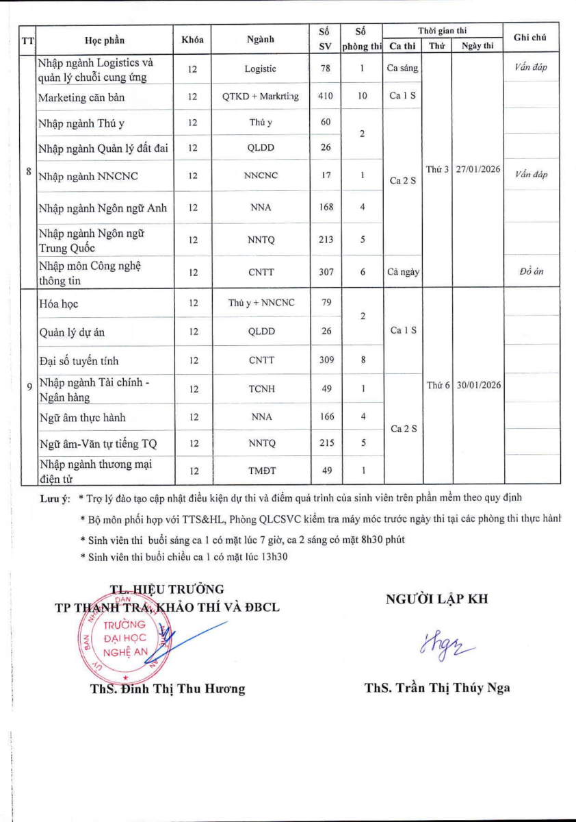 Lịch thi HK1 2025-2026 hệ Liên thông, Văn bằng 2, Vừa học vừa làm