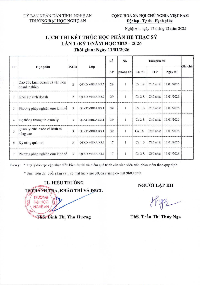 Lịch thi kết thúc học phần hệ Thạc sĩ lần thứ 1 - Kỳ 1 năm học 2025-2026 17/12/2025 09:01 404 lượt xem