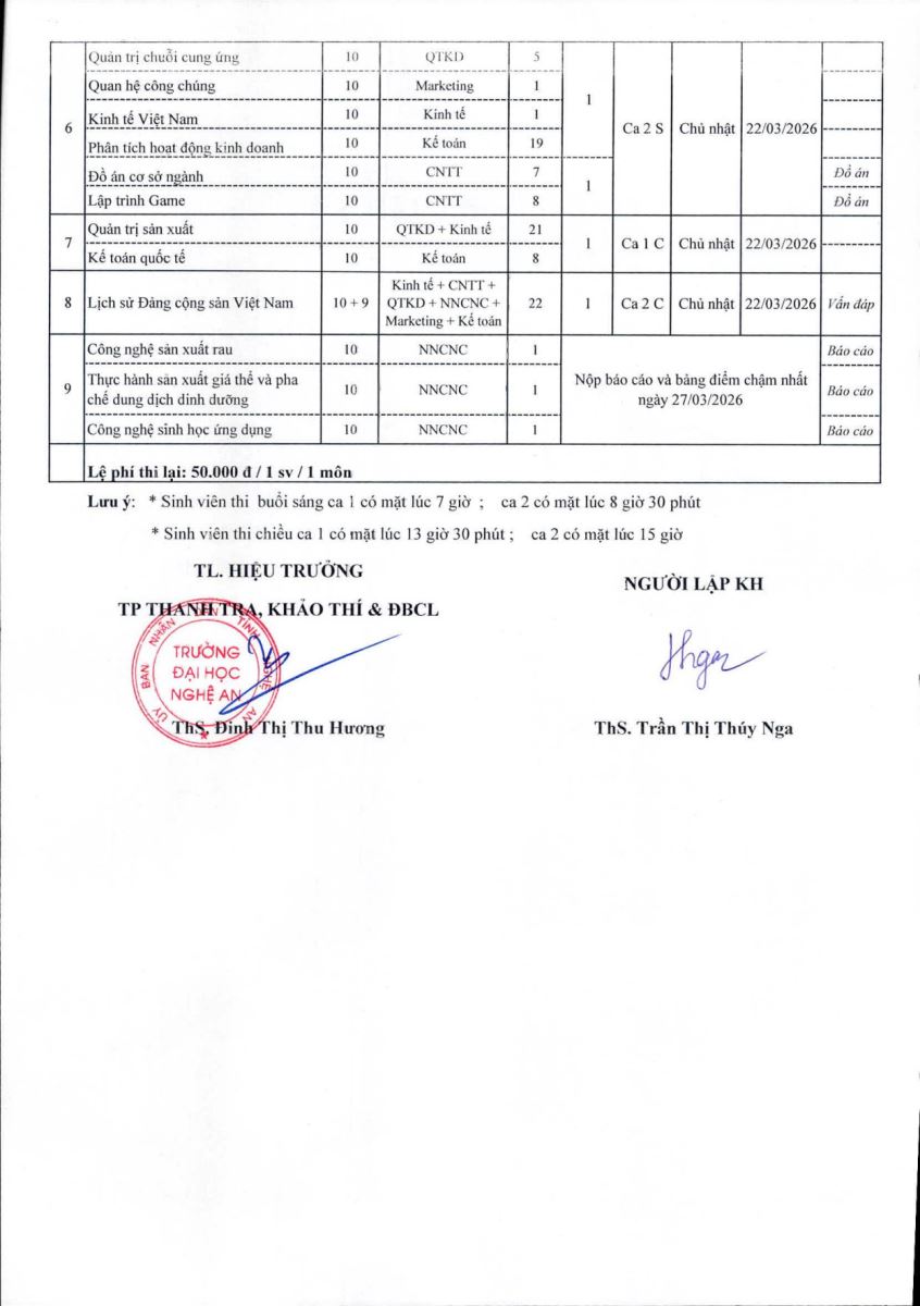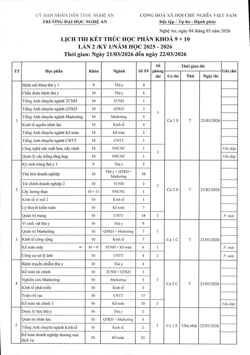 Lịch thi kết thúc học phần Khóa 9, Khóa 10 lần 2/kỳ 1/ năm học 2025-2026 12/03/2026 03:12 36 lượt xem