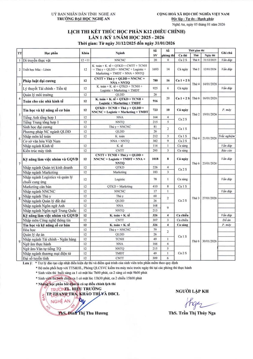 Thông báo điều chỉnh lịch thi kết thúc học phần Hệ Đại học Chính quy Khóa 12 06/01/2026 10:25 592 lượt xem