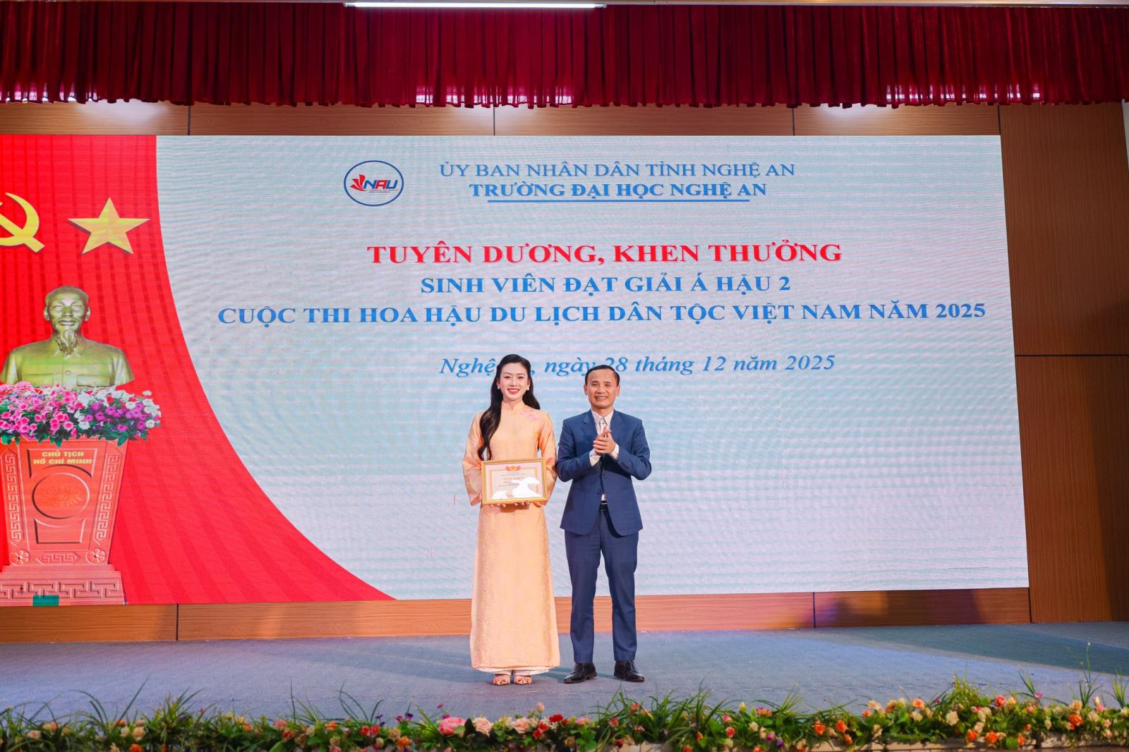 Trong không khí dân chủ, cởi mở của Hội nghị Đối thoại giữa Hiệu trưởng với sinh viên năm học 2025 – 2026, Trường Đại học Nghệ An đã long trọng tổ chức Lễ tuyên dương, khen thưởng sinh viên năm học 2024 – 2025 – khoảnh khắc ý nghĩa nhằm ghi nhận những nỗ lực bền bỉ, tinh thần vượt khó và khát vọng vươn lên của sinh viên toàn trường.