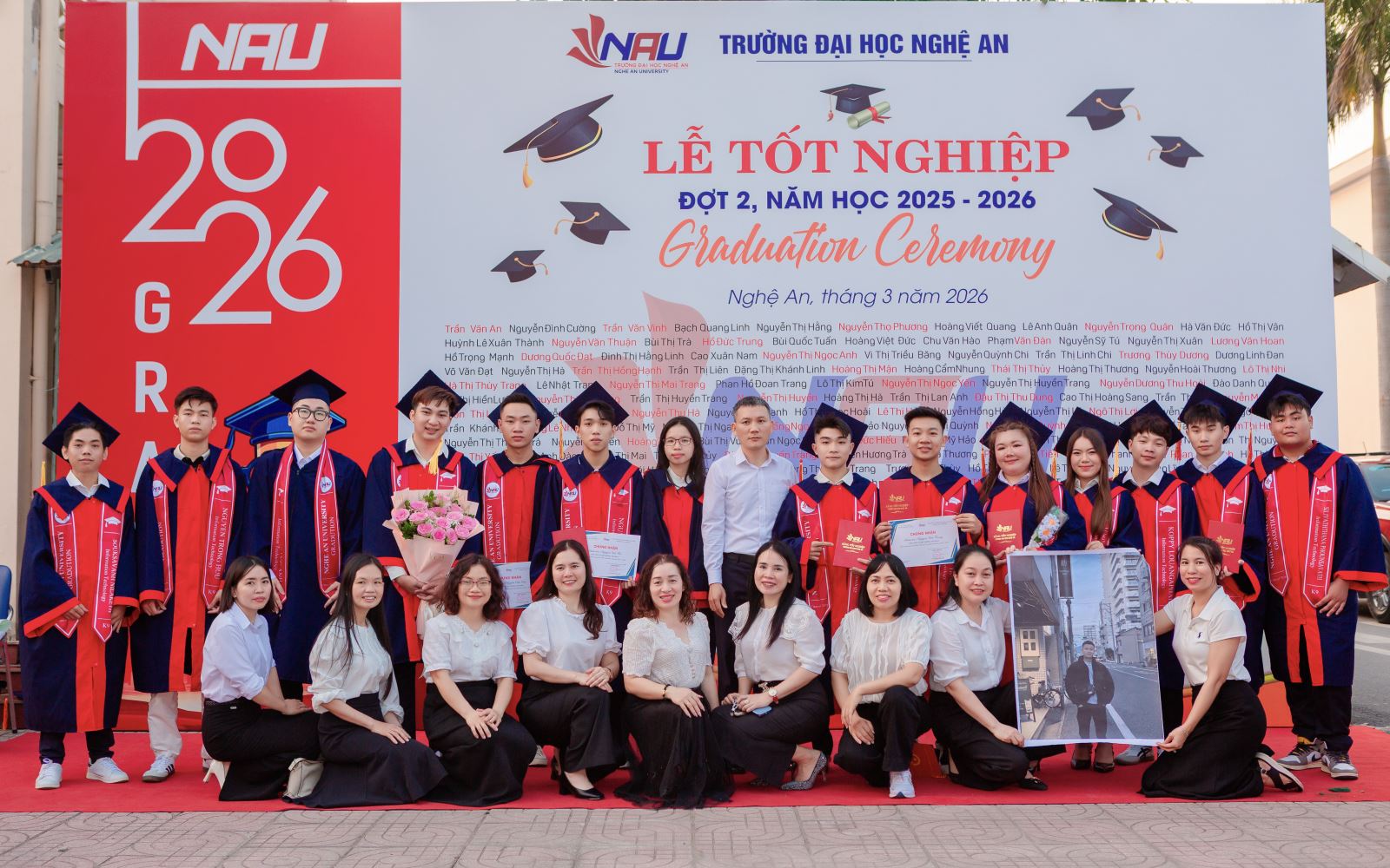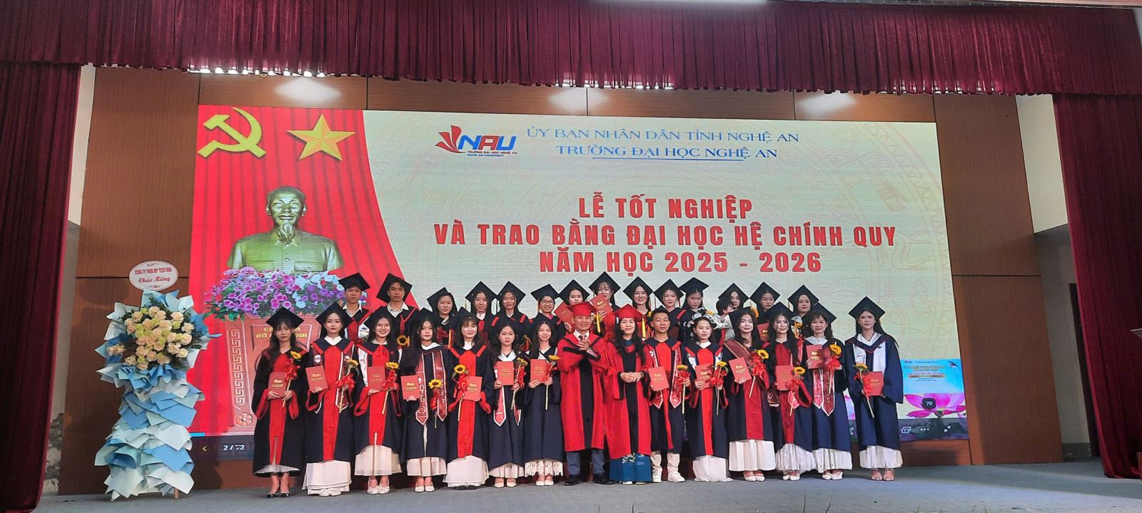 Chiều ngày 29/03/2026, trong không khí trang nghiêm tại Sân Hội trường A1, Khoa Công nghệ thông tin – Trường Đại học Nghệ An đã long trọng tổ chức Lễ tốt nghiệp và trao bằng cử nhân hệ chính quy Đợt 2, năm học 2025 – 2026. Đây là sự kiện đặc biệt đánh dấu cột mốc quan trọng: Những kỹ sư/cử nhân CNTT khóa đầu tiên (K9) chính thức rời ghế nhà trường để chinh phục thị trường lao động số.