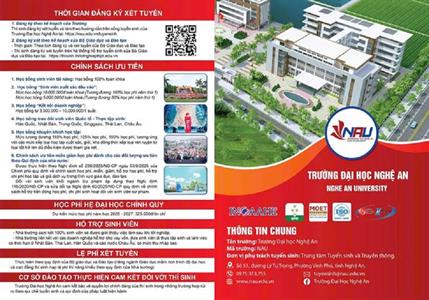 Trường Đại học Nghệ An không chỉ là một cơ sở giáo dục công lập chất lượng cao, mà còn là trung tâm sáng tạo và đổi mới, mang đến cho sinh viên môi trường học tập chuyên nghiệp, nhiều cảm hứng. Với mục tiêu là đào tạo nguồn nhân lực chất lượng cao, NAU không ngừng tìm kiếm những phương pháp đào tạo tiên tiến nhất, từ lý thuyết đến thực hành, để vươn tầm khu vực ASEAN và thế giới.