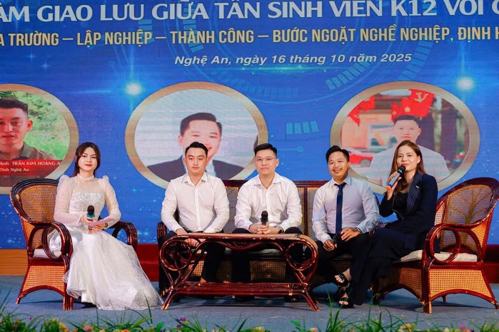 Tối ngày 16 tháng 10 năm 2025, tại Hội trường lớn Trường Đại học Nghệ An đã diễn ra buổi Tọa đàm “Ra trường - Lập nghiệp - Thành công” do Đoàn Thanh niên – Hội Sinh viên phối hợp với các khoa chuyên môn tổ chức. Chương trình có sự tham dự của Ban Giám hiệu Nhà trường, đại diện các đơn vị, giảng viên cùng đông đảo sinh viên các khóa, đặc biệt là sự trở lại của các anh chị cựu sinh viên tiêu biểu – những gương mặt thành công trong nhiều lĩnh vực nghề nghiệp và khởi nghiệp.