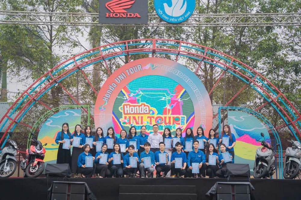 Diễn ra trong suốt một ngày, Honda UNI TOUR 2025 mang đến cho sinh viên Trường Đại học Nghệ An cơ hội tham gia các hoạt động tương tác, tìm hiểu kiến thức về an toàn giao thông, khám phá công nghệ xe máy, trải nghiệm thực tế về các dịch vụ và sản phẩm mới. Các khu vực trưng bày, sân chơi trí tuệ, thử thách thể thao và trải nghiệm ứng dụng công nghệ đã thu hút hàng nghìn lượt sinh viên tham gia. Chương trình không chỉ dừng lại ở hoạt động giải trí – trải nghiệm mà còn hướng tới mục tiêu giáo dục, giúp sinh viên nâng cao nhận thức về văn hóa giao thông, chuẩn bị hành trang tốt hơn cho cuộc sống và công việc trong tương lai. Trong khuôn khổ chương trình, Trung tâm Hỗ trợ và Phát triển Sinh viên Việt Nam đã trao tặng những suất học bổng trị giá 1.000.000 đồng cho các sinh viên vượt khó học giỏi của Trường Đại học Nghệ An. Đây là những sinh viên có hoàn cảnh đặc biệt nhưng vẫn nỗ lực không ngừng trong học tập, rèn luyện và tham gia hoạt động xã hội. Những suất học bổng này mang ý nghĩa động viên to lớn, không chỉ hỗ trợ về mặt vật chất mà còn thể hiện sự ghi nhận đối với tinh thần vươn lên của các em. Điều đó cho thấy sự đồng hành của các tổ chức, doanh nghiệp đối với sứ mệnh giáo dục và đào tạo thế hệ trẻ.
