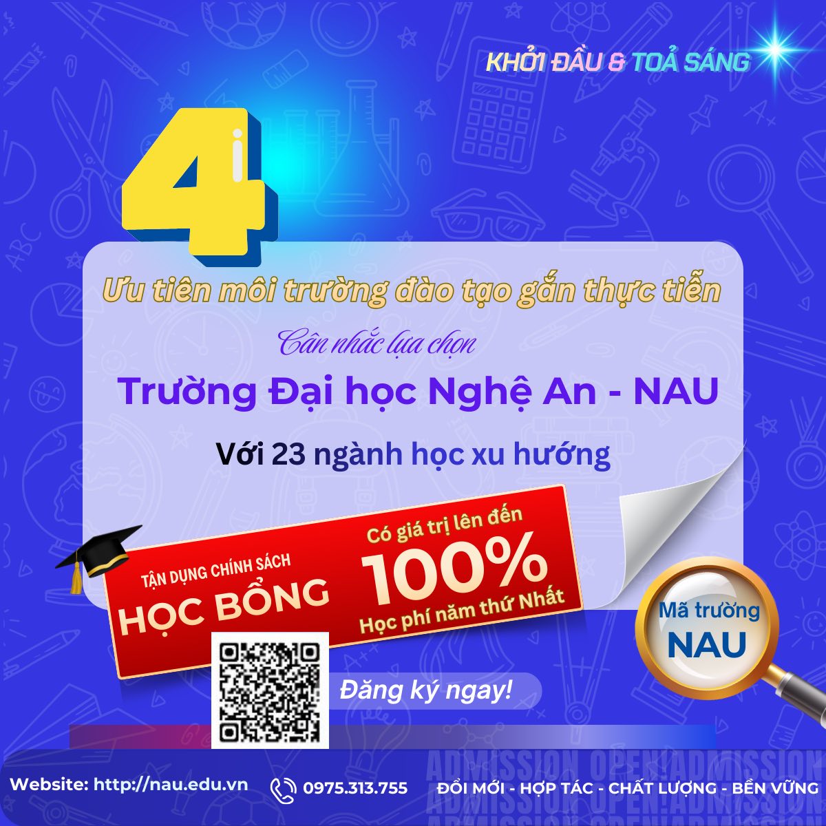 👉 Theo dõi Fanpage Trường Đại học Nghệ An để được tư vấn 1:1 xuyên suốt mùa tuyển sinh.