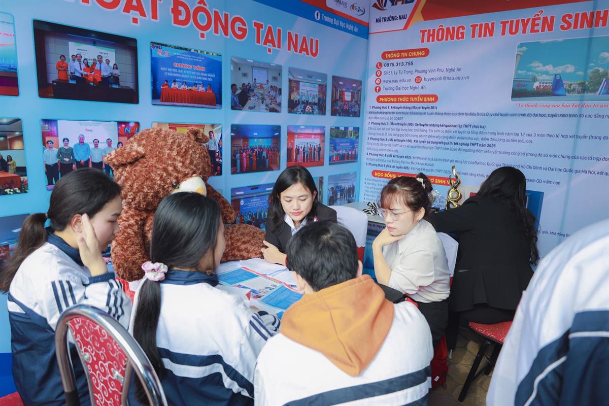 Là trường đại học công lập uy tín khu vực Bắc Trung Bộ, NAU kiên định định hướng: Đào tạo gắn thực tiễn – Chuyển đổi số mạnh mẽ – Hội nhập quốc tế – Lấy người học làm trung tâm. Môi trường học tập hiện đại, chương trình tiên tiến, nhiều học phần giảng dạy bằng tiếng Anh, phù hợp với tư duy năng động và khát vọng hội nhập của Gen Z.
