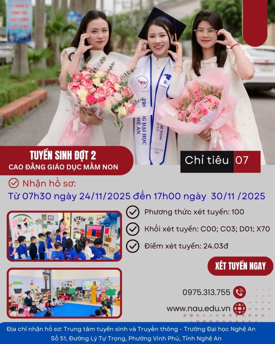 Bạn yêu thích trẻ nhỏ? Muốn trở thành giáo viên mầm non với cơ hội việc làm rộng mở? Đừng bỏ lỡ đợt tuyển sinh bổ sung cuối cùng năm 2025 của Trường Đại học Nghệ An: