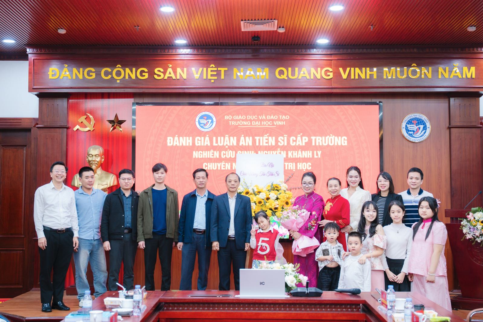 Trong giây phút ý nghĩa, tân Tiến sĩ Nguyễn Khánh Ly đã gửi lời tri ân sâu sắc tới các thầy cô hướng dẫn, cơ sở đào tạo, lãnh đạo Trường Đại học Nghệ An, đồng nghiệp, gia đình và bạn bè – những người đã luôn đồng hành, động viên và hỗ trợ trong suốt quá trình học tập và nghiên cứu.