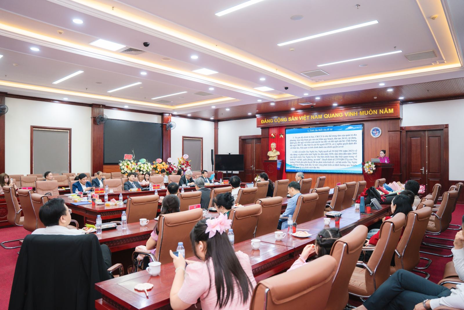 Sáng 08/3/2026, tại Trường Đại học Vinh, NCS Nguyễn Khánh Ly – giảng viên Khoa Khoa học cơ bản, Trường Đại học Nghệ An đã bảo vệ thành công luận án Tiến sĩ chuyên ngành Chính trị học. Mã số: 9 31 01 02 với đề tài: “Xây dựng đội ngũ cán bộ cấp cơ sở người dân tộc thiểu số: Nghiên cứu trường hợp miền Tây tỉnh Nghệ An”, đề tài dưới sự hướng dẫn của PGS.TS Nguyễn Thái Sơn và TS. Trần Cao Nguyên. Thành quả này không chỉ là dấu mốc quan trọng trong hành trình học thuật của cá nhân nghiên cứu sinh mà còn góp phần khẳng định chất lượng đội ngũ giảng viên và môi trường nghiên cứu khoa học tại Trường Đại học Nghệ An (NAU).