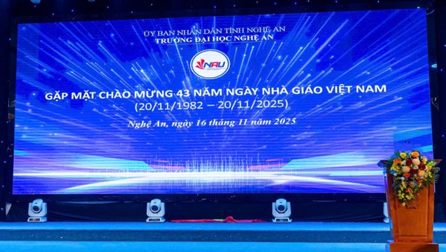 Chiều ngày 16/11/2025, tại Hội trường Diamond Palace – Khách sạn Giao Tế (Nghệ An), Trường Đại học Nghệ An đã tổ chức buổi gặp mặt thân mật, trang trọng nhằm kỷ niệm 43 năm ngày Nhà giáo Việt Nam. Chương trình đã diễn ra trong không khí ấm áp, tràn đầy cảm xúc tri ân, thể hiện sâu sắc truyền thống “Tôn sư trọng đạo” tốt đẹp của dân tộc.