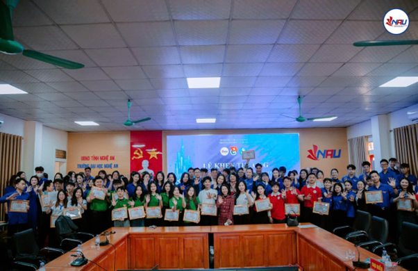 Vào sáng ngày 10/01/2026 tại Trường Đại học Nghệ An, buổi lễ tuyên dương, khen thưởng các cá nhân có thành tích xuất sắc trong công tác Đoàn Thanh niên – Hội Sinh viên năm 2025 và trao Quyết định thành lập Câu lạc bộ “Viết tiếp ước mơ” đã được tổ chức với sự tham dự của đại diện Ban Giám hiệu nhà trường, Đoàn Thanh niên – Hội Sinh viên, các thầy cô giảng viên cùng đông đảo đoàn viên, sinh viên.