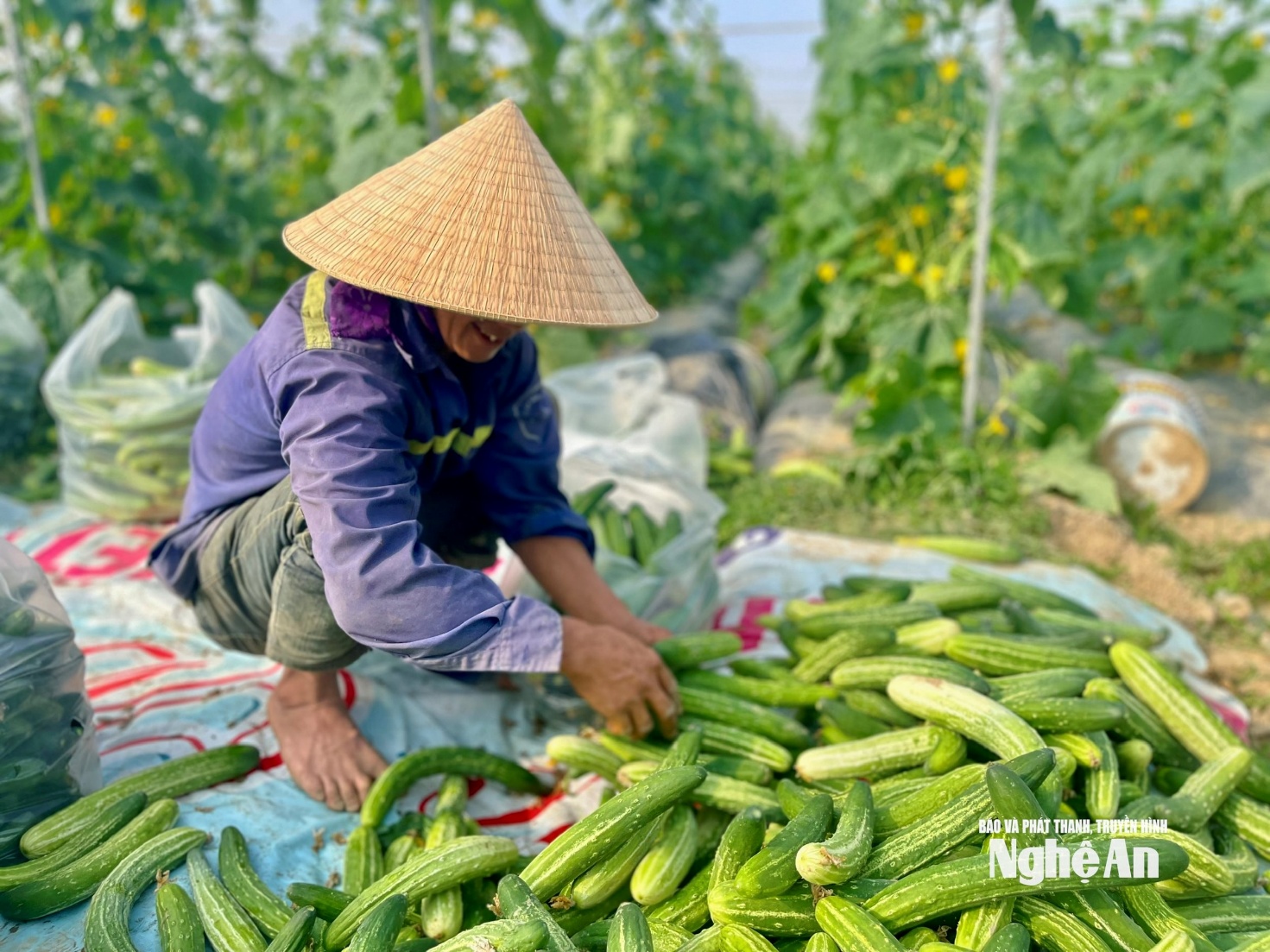 Dưa chuột hữu cơ cho năng 50 tấn/ha, cao hơn 25% so với canh tác đại trà tại trang trại của HTX Nông nghiệp Thành Vinh.