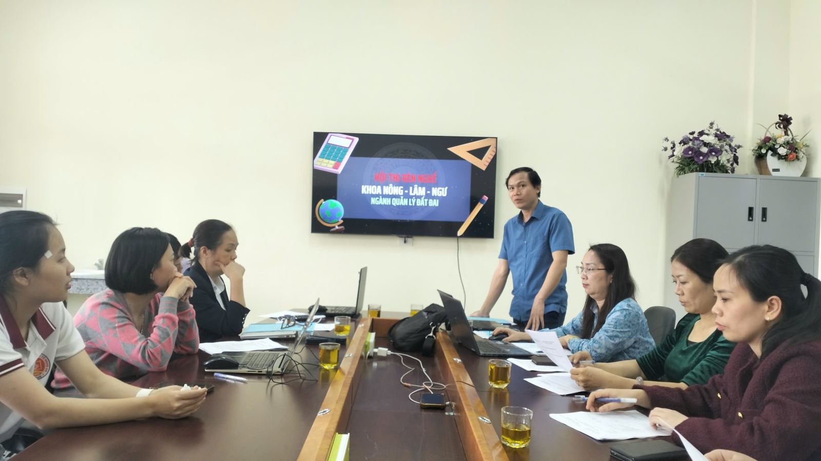 Tham gia hội thi, các đội thi đã mang đến những nội dung rèn nghề sát với yêu cầu thực tế của từng ngành học. Ngành Quản lý đất đai có hai đội dự thi, gồm Đội Quản lý đất đai 1 và Đội Quản lý đất đai 2, cùng thực hiện phần thi Số hóa bản đồ hành chính bằng phần mềm MapInfo, thể hiện khả năng ứng dụng công nghệ thông tin và phần mềm chuyên ngành trong công tác quản lý đất đai hiện đại. Ngành Thú y tham gia với hai đội thi, trong đó Đội Thú y 1 thực hiện nội dung Kỹ thuật khám dạ cỏ trên bò, còn Đội Thú y 2 trình bày phần thi Kỹ thuật khám phổi và chẩn đoán lâm sàng trên bò, phản ánh rõ kỹ năng thực hành lâm sàng và tư duy chẩn đoán bệnh của sinh viên. Đối với ngành Nông nghiệp công nghệ cao, đội thi đã lựa chọn nội dung Kỹ thuật sản xuất hoa cúc ứng dụng công nghệ cao, thể hiện quy trình sản xuất hiện đại gắn với nhà lưới, tưới tiêu và chăm sóc cây trồng theo hướng bền vững.