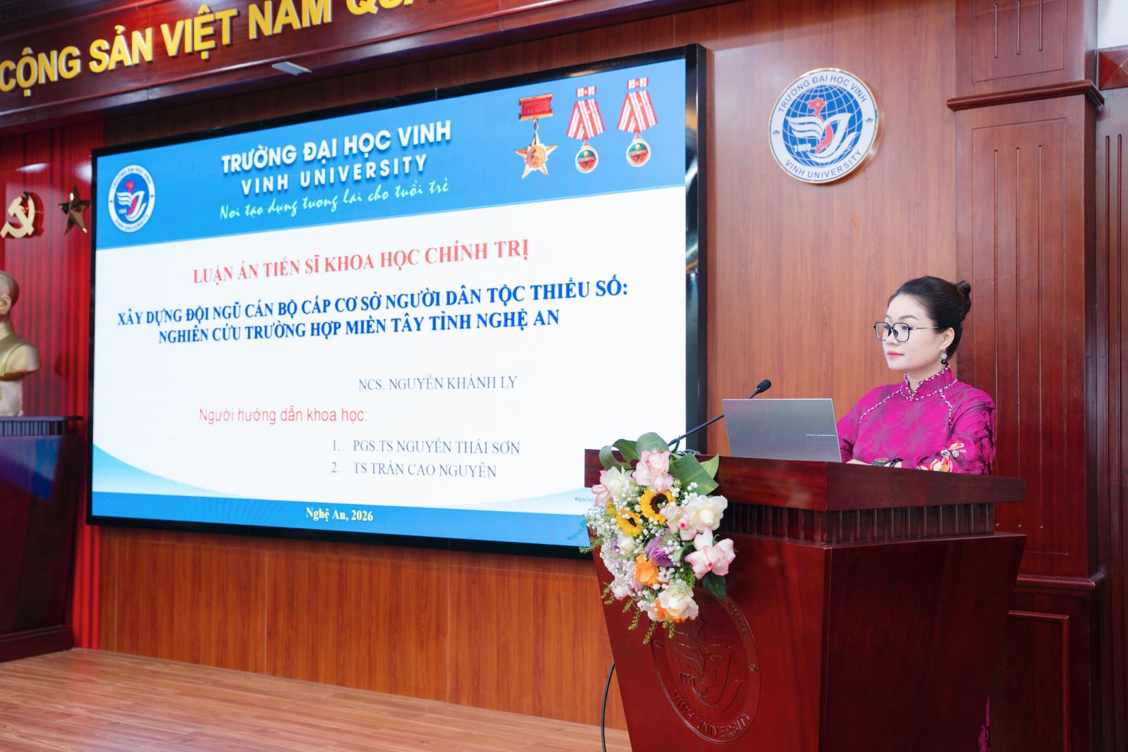 NCS. Nguyễn Khánh Ly cũng bày tỏ lòng biết ơn đến cơ sở đào tạo cũng như Trường Đại học Nghệ An, gia đình, bạn bè đã luôn động viên, giúp đỡ để có thể hoàn thành tốt đề tài luận án. Việc bảo vệ thành công luận án Tiến sĩ không chỉ là niềm tự hào của NCS Nguyễn Khánh Ly mà còn là minh chứng cho chất lượng của đội ngũ giảng viên Trường Đại học Nghệ An.