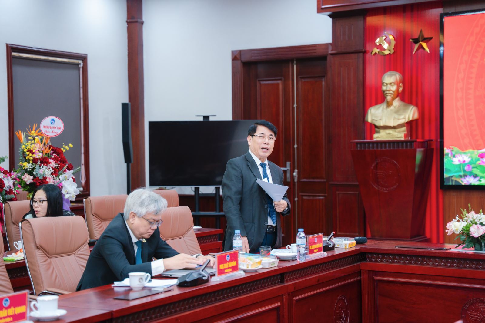 Lãnh đạo và đồng nghiệp Trường Đại học Nghệ An chúc mừng Tân Tiến sĩ Nguyễn Khánh Ly