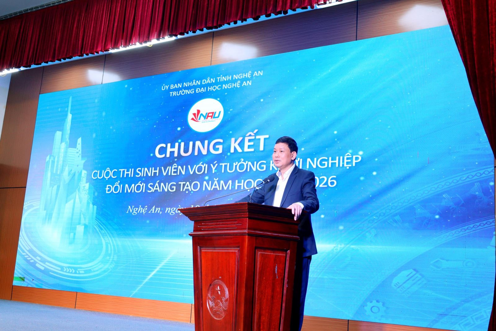 Phát biểu khai mạc và chúc mừng chương trình, TS. Trần Anh Tư – Phó Hiệu trưởng Trường Đại học Nghệ An nhấn mạnh: Cuộc thi không chỉ là nơi sinh viên thể hiện tinh thần đổi mới, mà còn là hành trình hun đúc bản lĩnh, đưa những ý tưởng táo bạo tiến gần hơn với thực tiễn. Mỗi dự án tham gia đều cho thấy niềm đam mê, khát vọng cống hiến và tinh thần dám nghĩ dám làm của tuổi trẻ NAU.