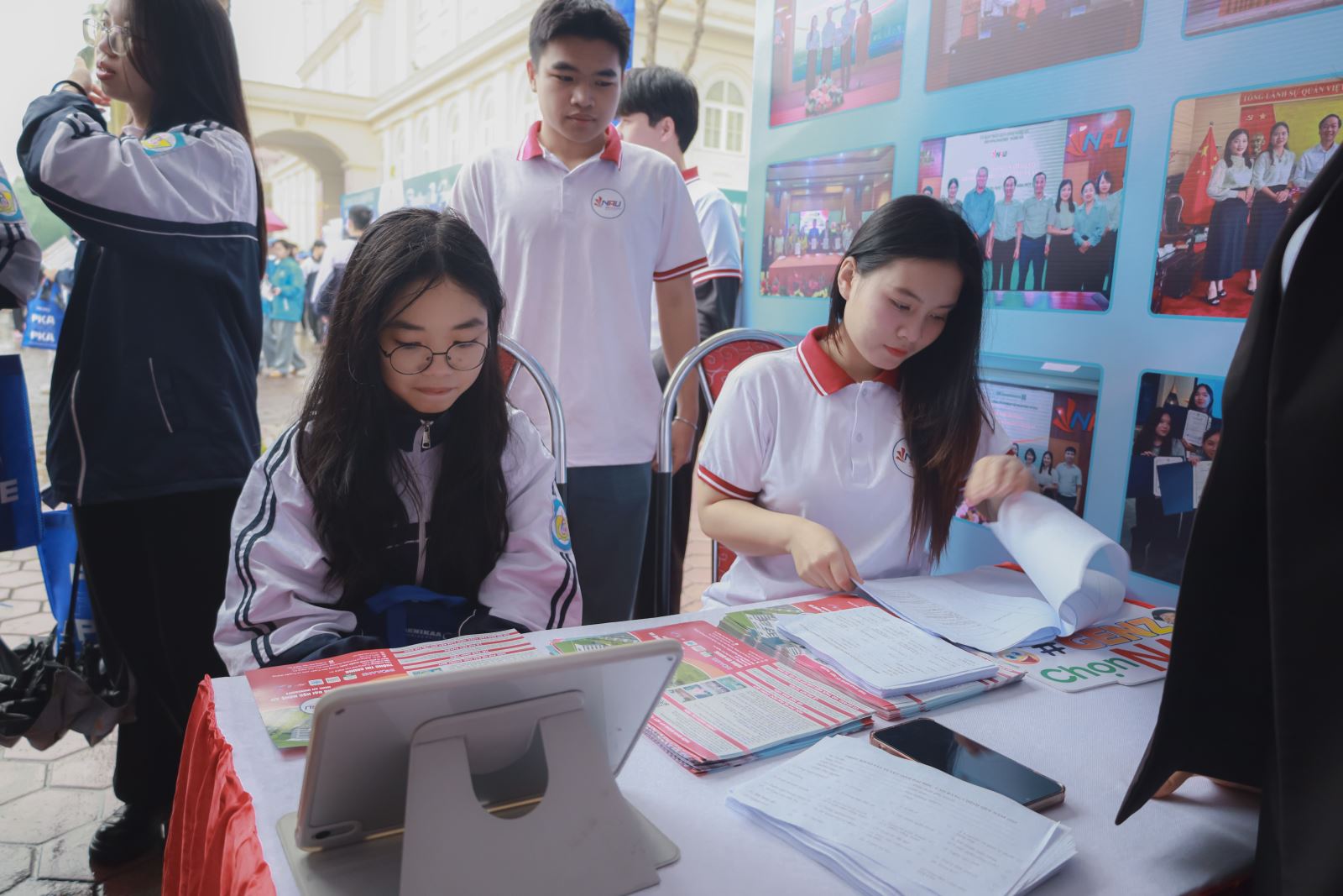 Đội ngũ tư vấn của Nhà trường đã trực tiếp lắng nghe, giải đáp tận tình từng câu hỏi của học sinh và phụ huynh, giúp các em hiểu rõ hơn về lộ trình học tập, cơ hội phát triển nghề nghiệp cũng như những lợi thế khi lựa chọn học tập tại Trường Đại học Nghệ An.