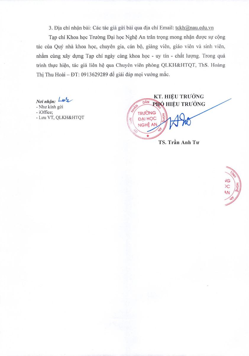 Thông báo mời viết bài đăng trên Tạp chí Khoa học Trường Đại học Nghệ An tập 5 số 1/2026 09/01/2026 04:24 1716 lượt xem