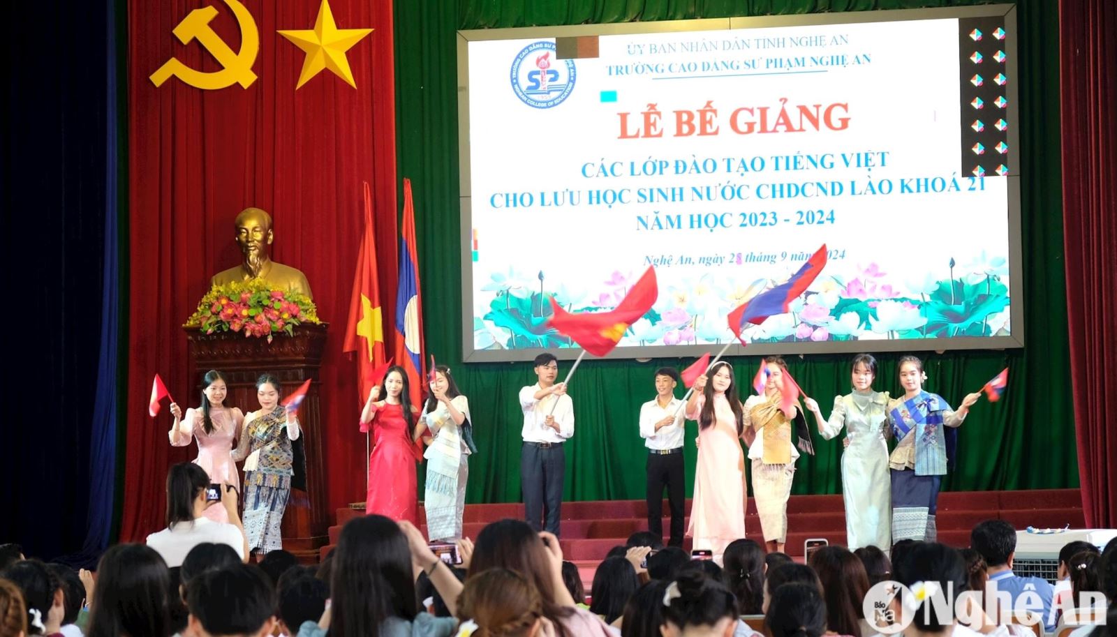 Sáng 25/9, Trường Cao đẳng Sư phạm Nghệ An tổ chức Lễ bế giảng các lớp đào tạo tiếng Việt cho lưu học sinh nước Cộng hoà Dân chủ nhân dân Lào khoá 21 năm học 2023 – 2024