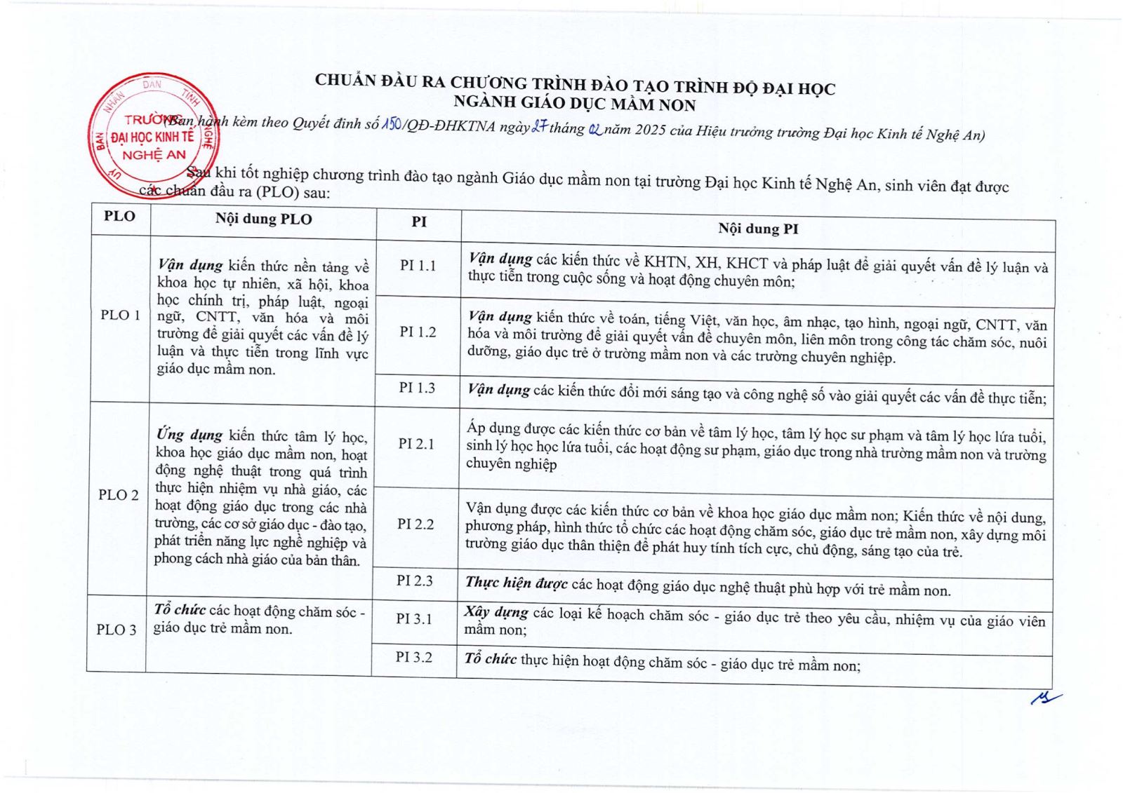 Bản mô tả Chương trình đào tạo Hệ đại học Chính quy ngành Giáo dục mầm non 17/02/2025 05:33 1800 lượt xem