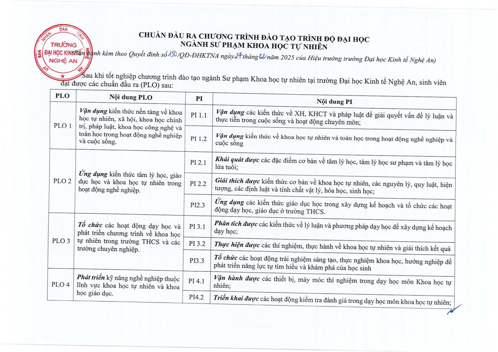 Bản mô tả Chương trình đào tạo Hệ đại học Chính quy ngành Sư phạm khoa học tự nhiên 17/02/2025 05:46 2265 lượt xem