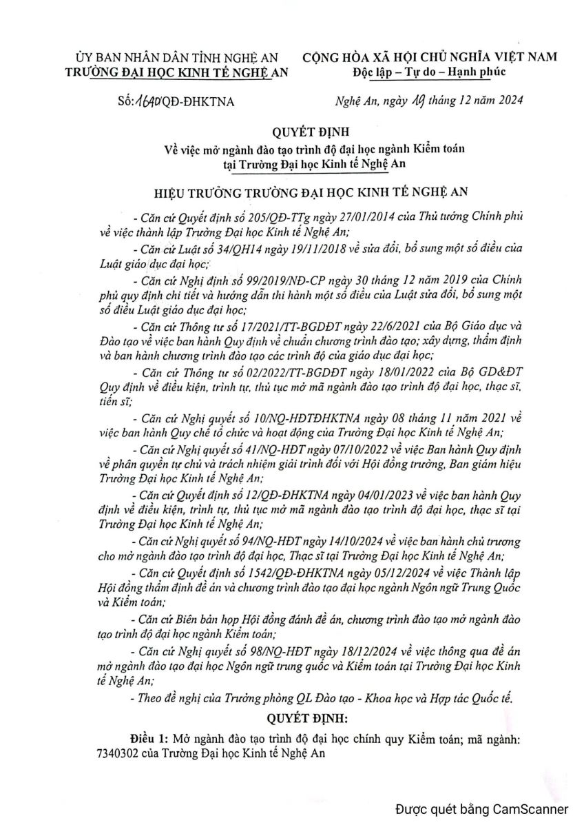 Quyết định mở ngành đào tạo Kiểm toán tại Trường Đại học Kinh tế Nghệ An 19/12/2024 09:34 1518 lượt xem