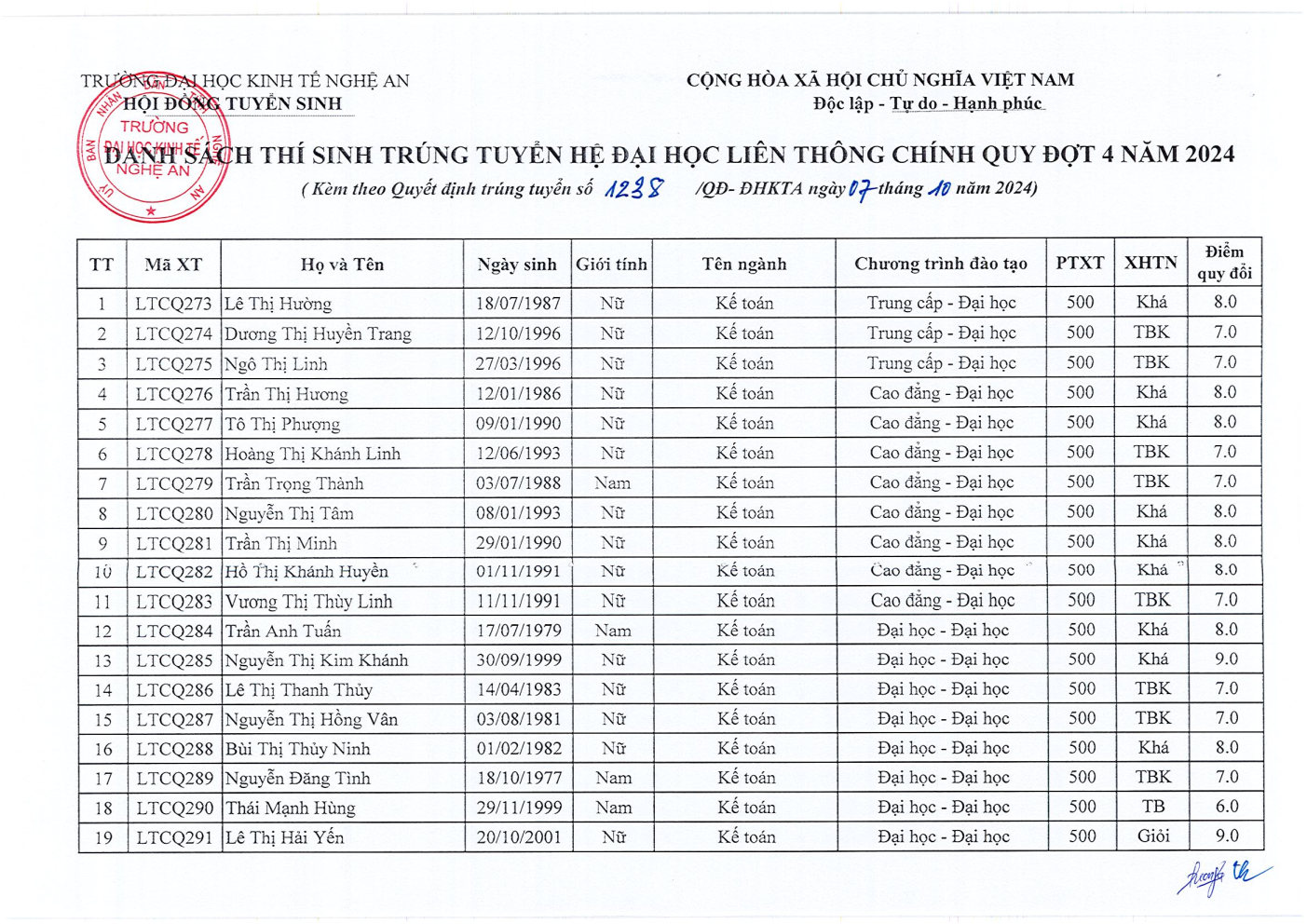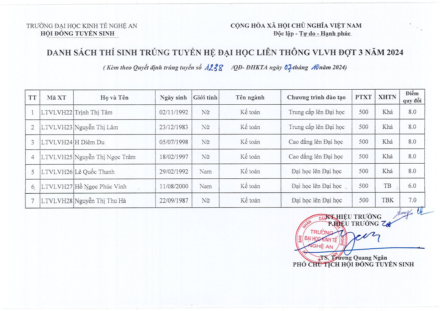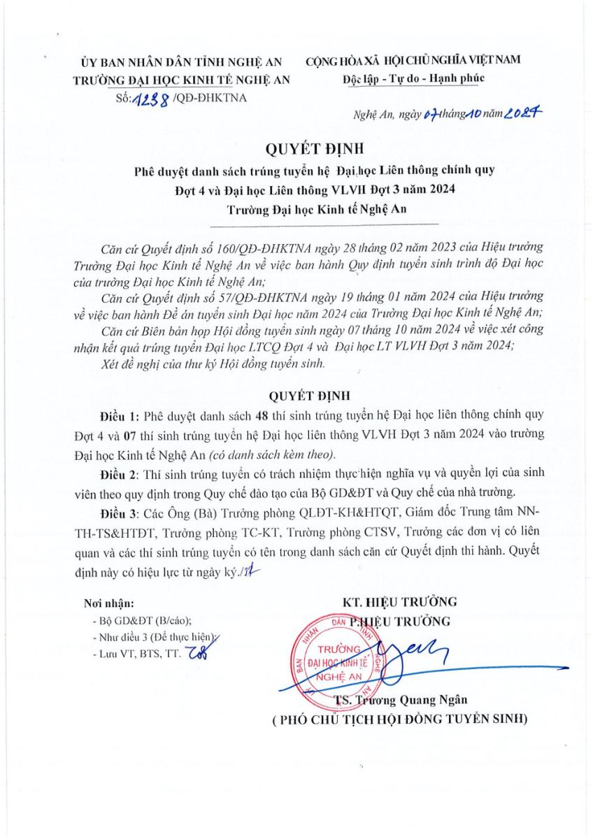 Quyết định trúng tuyển ĐH Liên thông CQ đợt 4 và ĐH Liên thông VLVH đợt 3 năm 2024 07/10/2024 07:09 2457 lượt xem