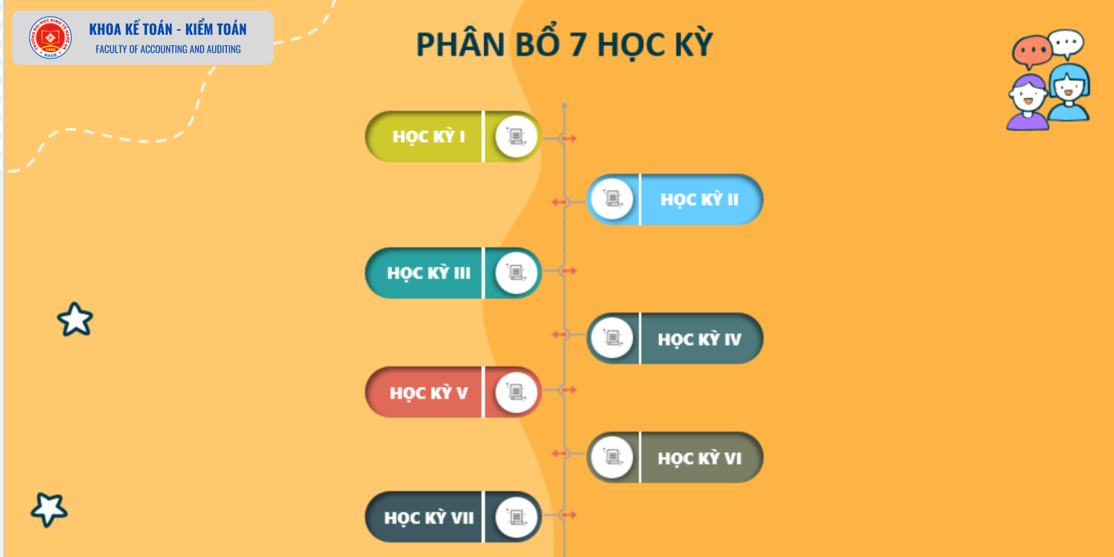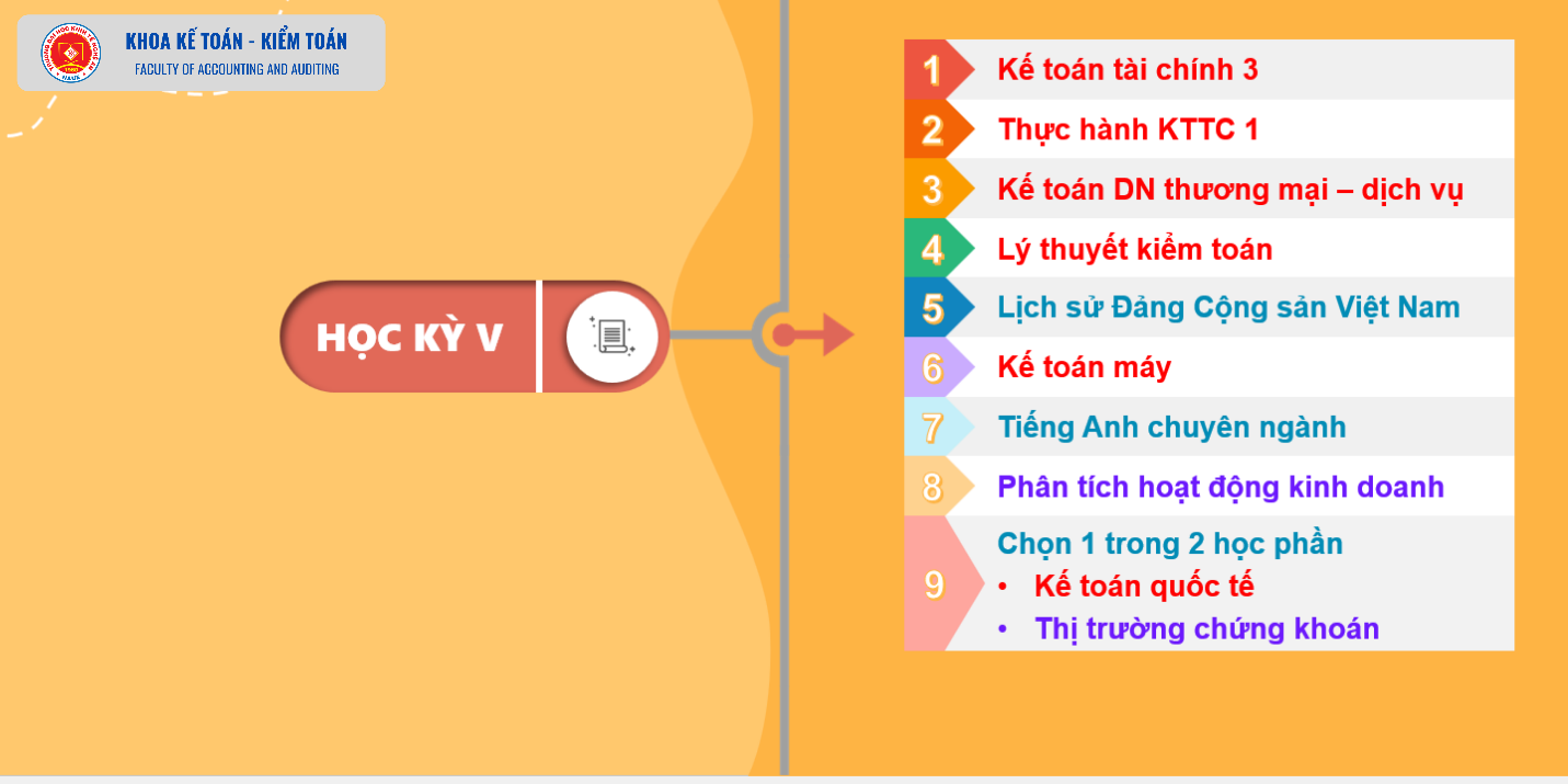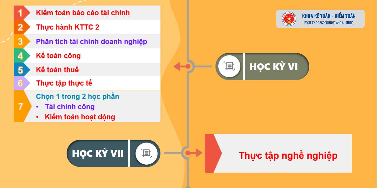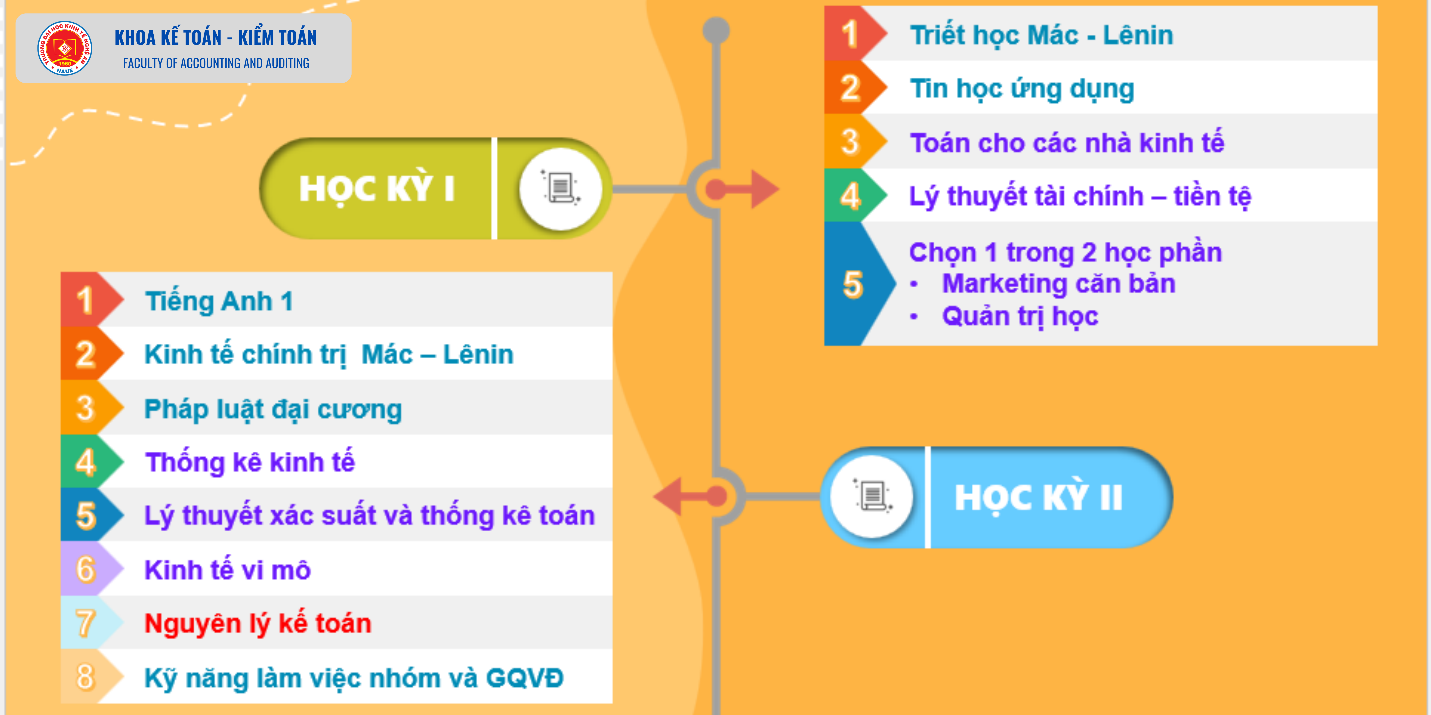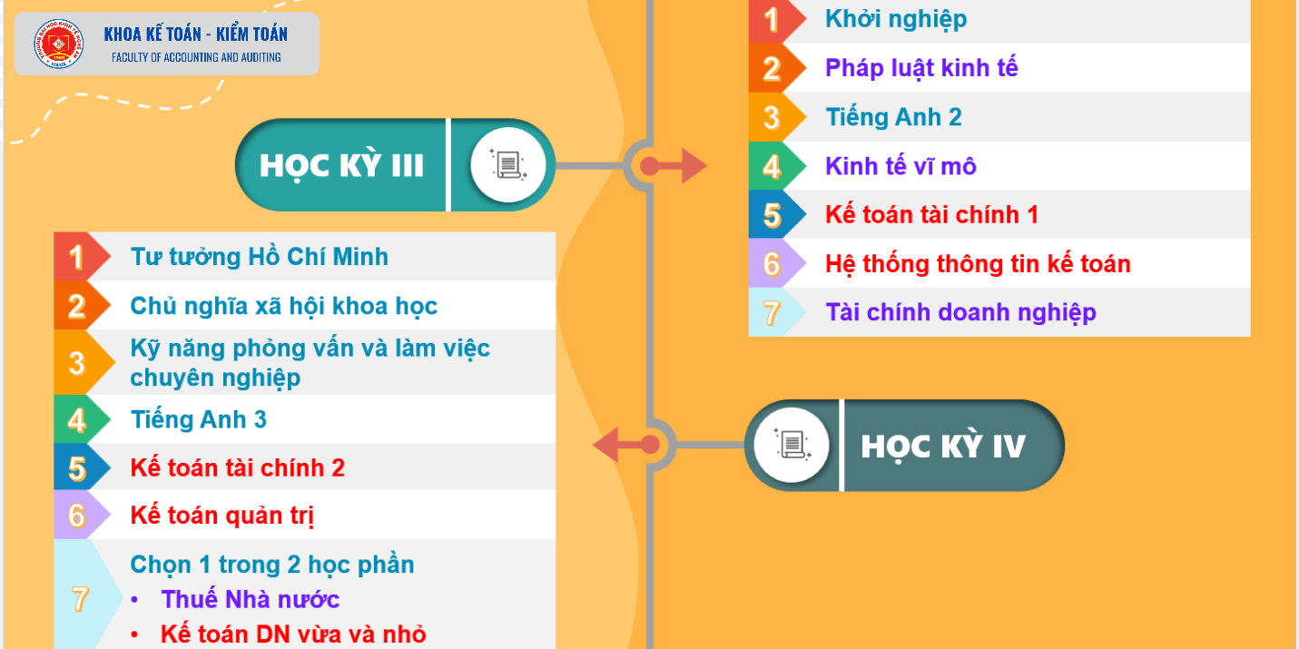 Chương trình đào tạo ngành Kế toán - lộ trình của bạn 30/10/2024 09:07 4006 lượt xem Ngành Kế toán học những gì? học bao lâu? Toàn bộ Chương trình đào tạo ngành Kế toán bao gồm 44 học phần tương ứng với 129 tín chỉ, thời gian học học 3,5 năm được chia thành 7 kỳ: