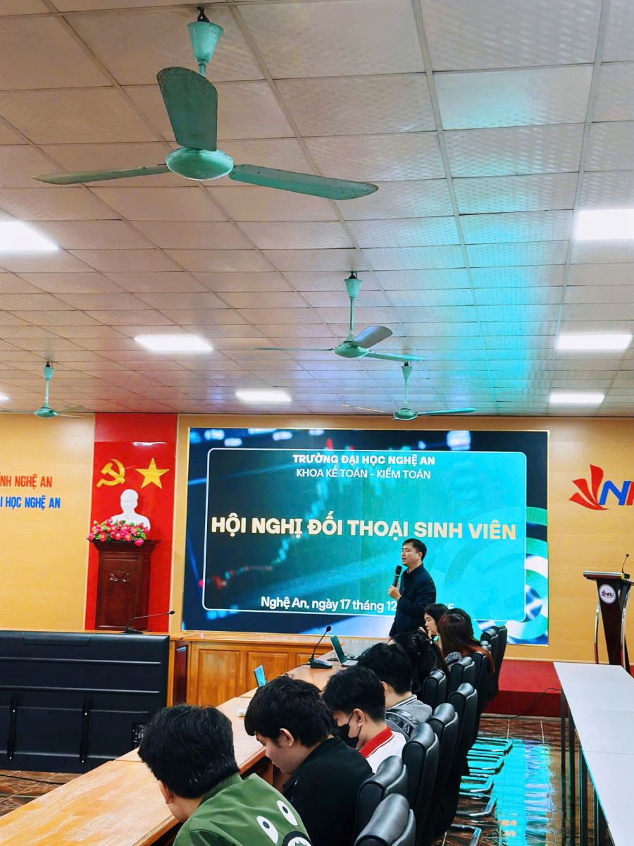 Đối thoại giữa sinh viên và khoa Kế toán - Kiểm toán 18/12/2025 09:10 371 lượt xem ĐỐI THOẠI SINH VIÊN – KHOA KẾ TOÁN – KIỂM TOÁN: LẮNG NGHE ĐỂ ĐỒNG HÀNH, CHIA SẺ ĐỂ PHÁT TRIỂN Nhằm tăng cường sự kết nối, lắng nghe và kịp thời giải đáp những tâm tư, nguyện vọng của người học, Khoa Kế toán – Kiểm toán đã tổ chức buổi đối thoại giữa sinh viên và đại diện Khoa trong không khí cởi mở, thẳng thắn và mang tính xây dựng cao. Tại buổi đối thoại, sinh viên đã mạnh dạn trao đổi, đặt câu hỏi xoay quanh nhiều nội dung thiết thực như: chương trình đào tạo, phương pháp giảng dạy – đánh giá, lịch học và thi, thực tập – kiến tập, nghiên cứu khoa học sinh viên, cơ hội nghề nghiệp sau tốt nghiệp, cũng như các điều kiện học tập và hoạt động hỗ trợ người học. Các ý kiến, đề xuất của sinh viên đều được đại diện Khoa ghi nhận đầy đủ và phản hồi trực tiếp, rõ ràng. Đại diện Khoa Kế toán – Kiểm toán, thầy Phạm Đức Giáp khẳng định: sinh viên là trung tâm của quá trình đào tạo, mọi đóng góp của sinh viên là cơ sở quan trọng để Khoa tiếp tục rà soát, điều chỉnh và nâng cao chất lượng chương trình, phương pháp giảng dạy và các hoạt động hỗ trợ học tập – nghề nghiệp. Buổi đối thoại không chỉ giúp tháo gỡ những vướng mắc, tạo sự đồng thuận giữa người học và đơn vị đào tạo, mà còn góp phần xây dựng môi trường học tập thân thiện, dân chủ và chuyên nghiệp. Qua đó, sinh viên thêm tin tưởng, chủ động và gắn bó hơn với Khoa Kế toán – Kiểm toán. Khoa trân trọng cảm ơn sự tham gia tích cực, thẳng thắn và trách nhiệm của các bạn sinh viên. Những ý kiến đóng góp hôm nay chính là động lực để Khoa không ngừng đổi mới, hướng tới mục tiêu đào tạo nguồn nhân lực kế toán – kiểm toán chất lượng cao, đáp ứng yêu cầu của xã hội và thị trường lao động.