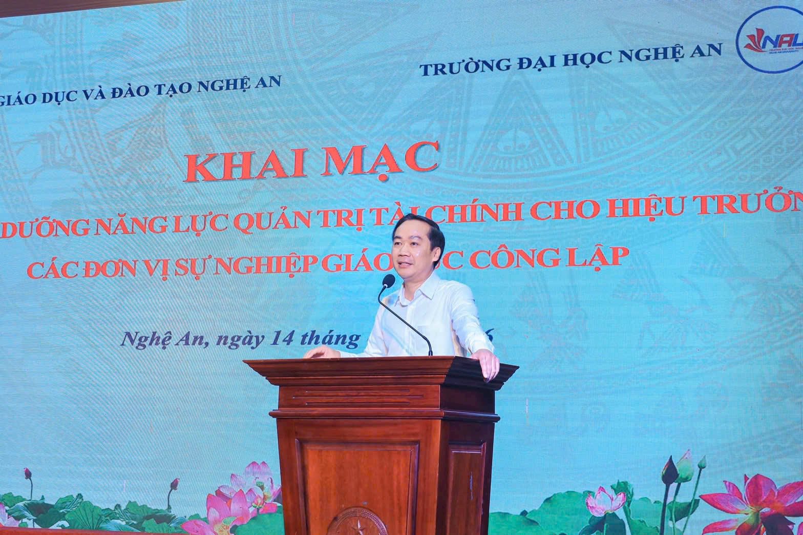 Sáng ngày 14/04/2026, Trường Đại học Nghệ An (NAU) phối hợp cùng Sở Giáo dục và Đào tạo tỉnh Nghệ An long trọng tổ chức khai mạc khóa bồi dưỡng: “Năng lực quản trị tài chính tại đơn vị sự nghiệp giáo dục công lập”.