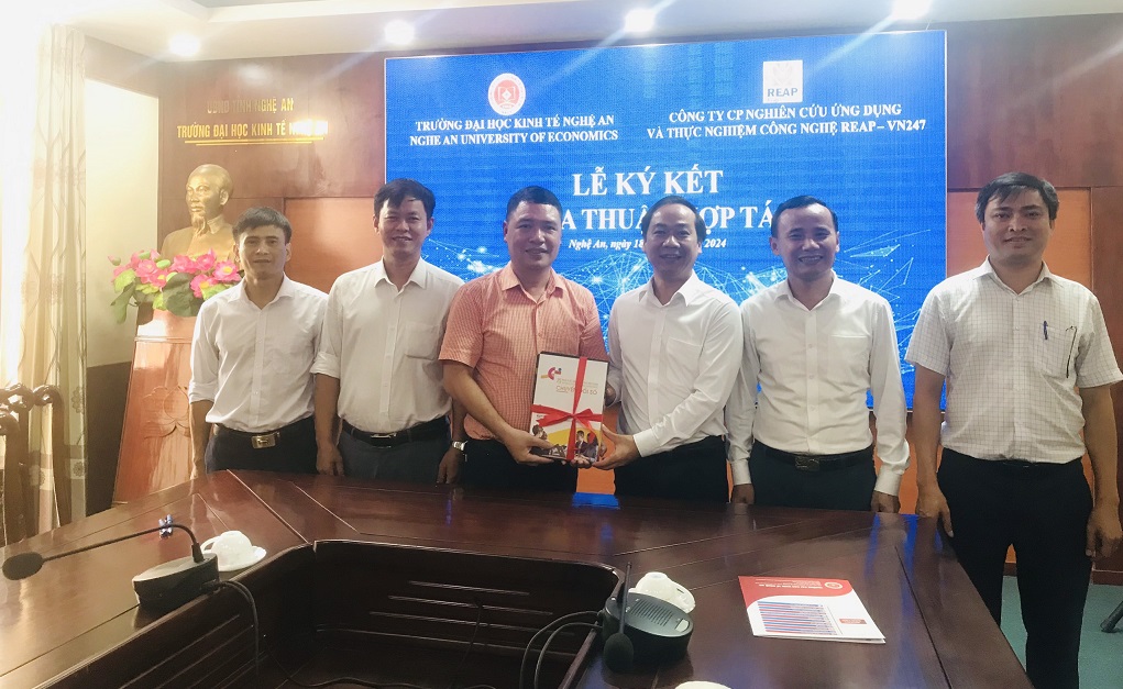Vào sáng ngày 18/7/2024, Đại diện Lãnh đạo của Công ty Cổ phần nghiên cứu ứng dụng và thực nghiệm công nghệ REAP (REAP - VN247) đã đến thăm, làm việc và ký kết thỏa thuận hợp tác với Trường Đại học Kinh tế Nghệ An.