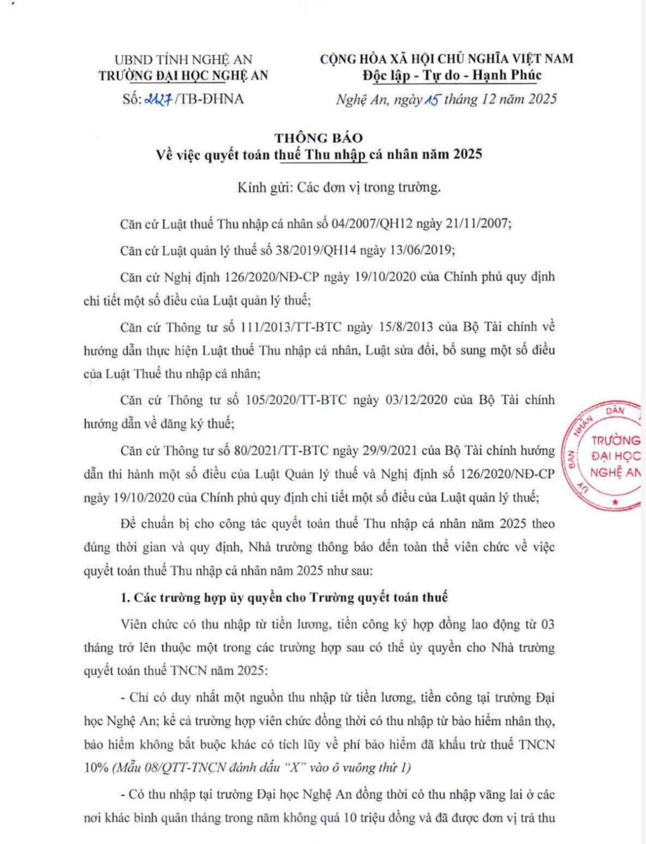 Thông báo về việc quyết toán thuế thu nhập cá nhân năm 2025 08/01/2026 03:26 139 lượt xem Tải các biểu mẫu tại đây Mẫu kê khai cá nhân Mẫu tổng hợp