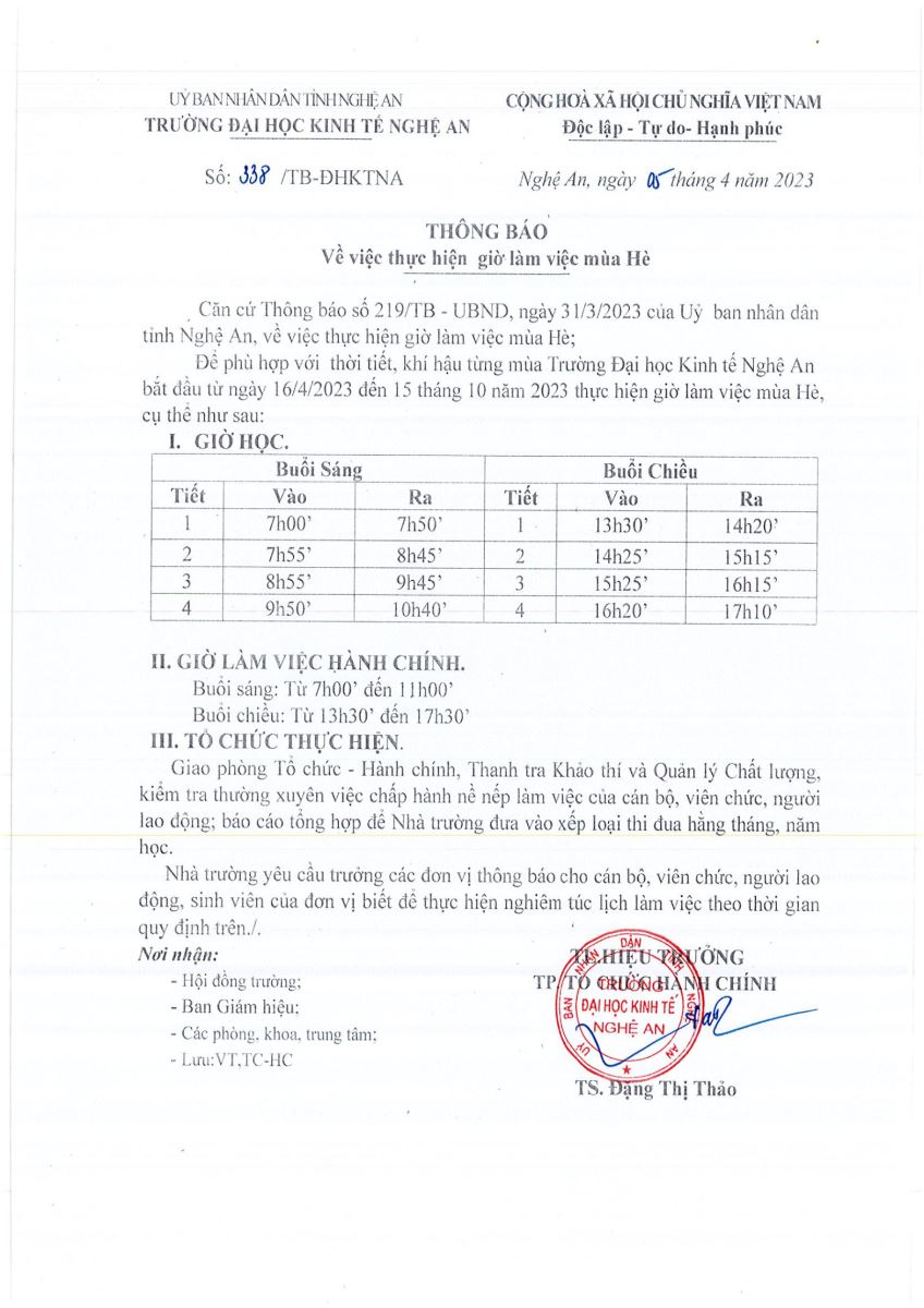 Thông báo giờ làm việc mùa đông