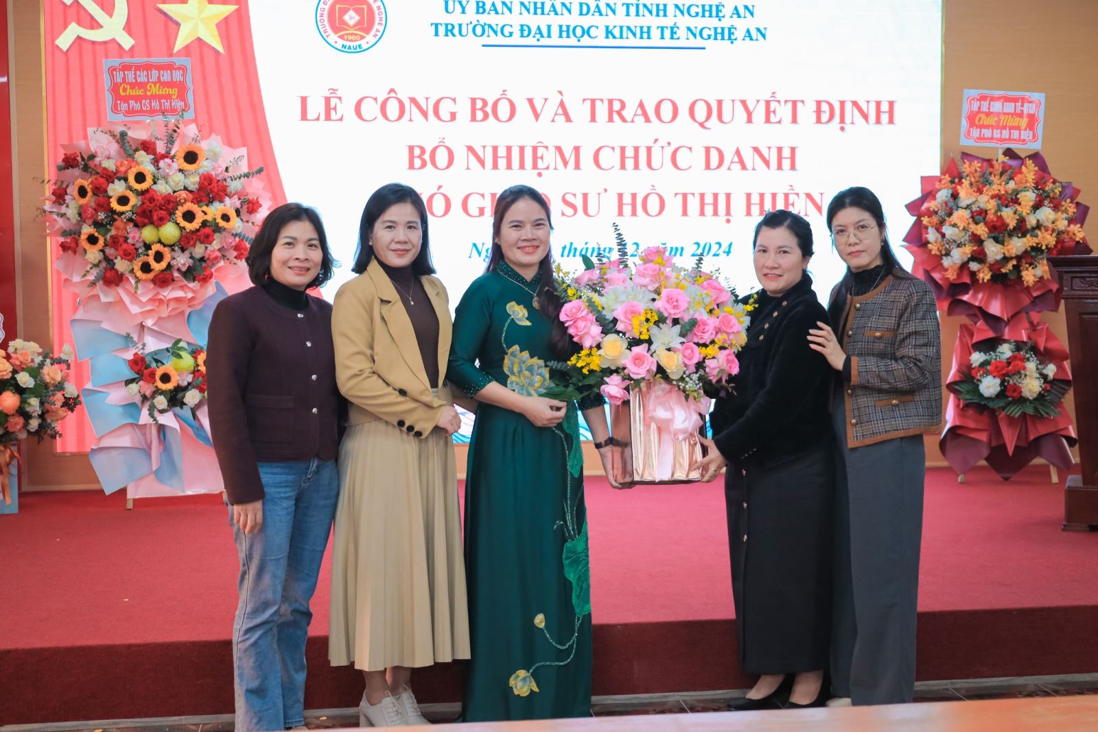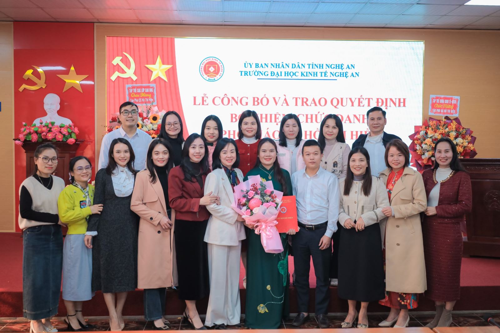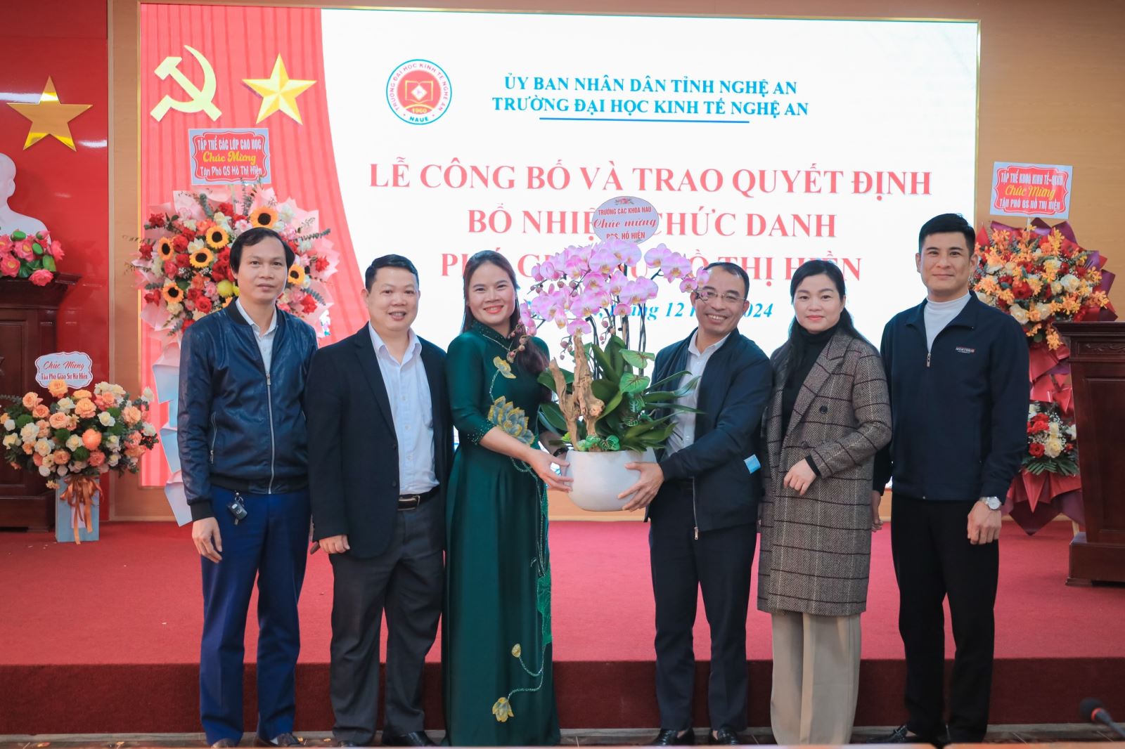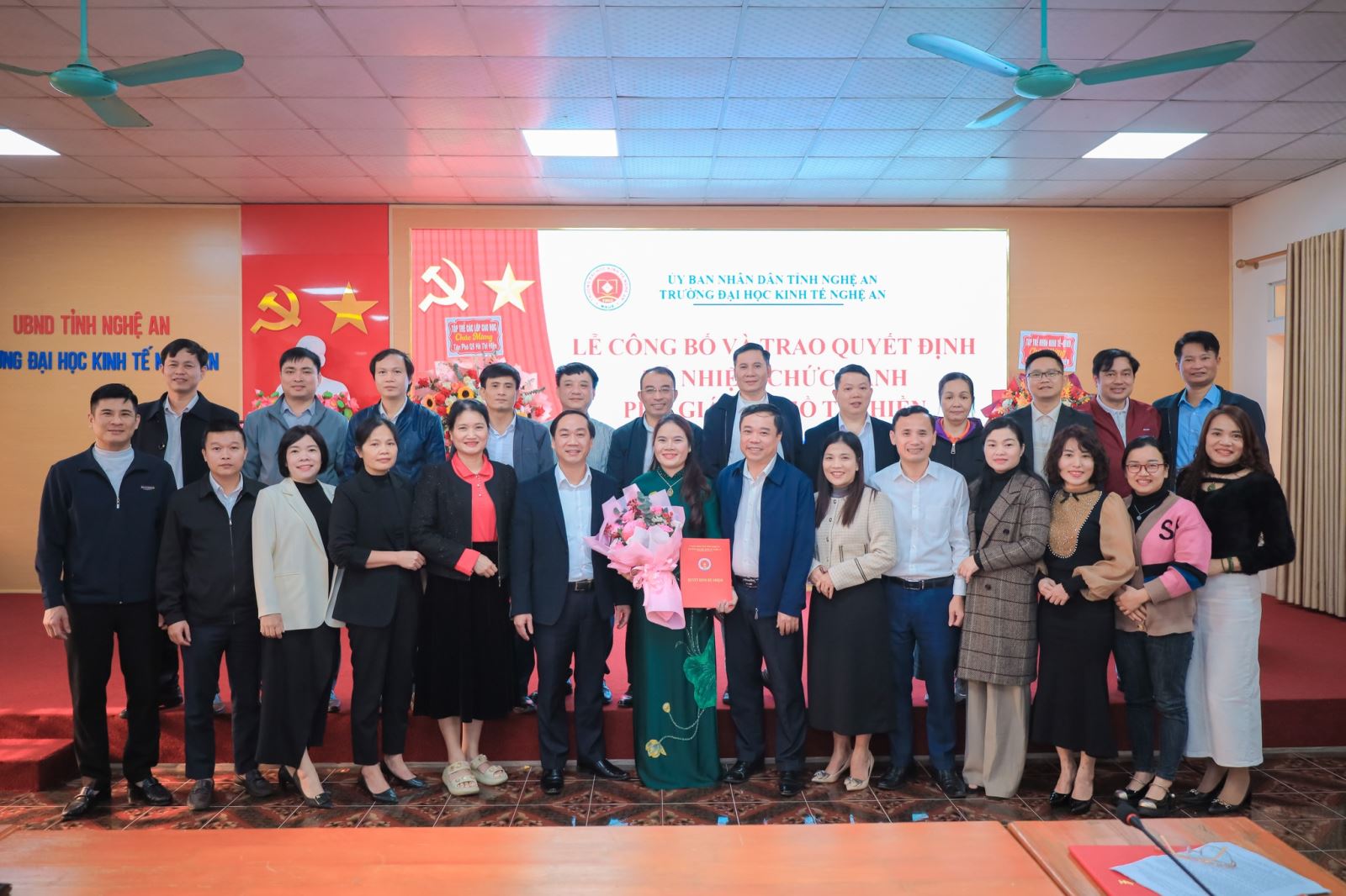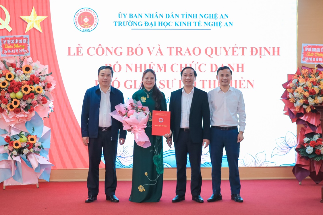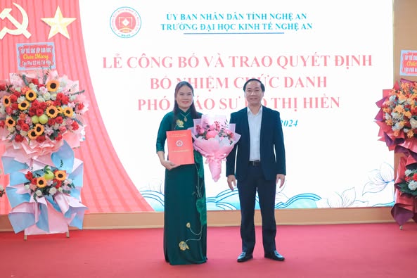 Chiều ngày 31/12/2024, Trường Đại học Kinh tế Nghệ An (nay là Trường Đại học Nghệ An, theo quyết định 1653/QĐ-TTg, ngày 26/12/2024 của Chính phủ) đã long trọng tổ chức Lễ Công bố Quyết định bổ nhiệm chức danh Phó Giáo sư cho TS. Hồ Thị Hiền - Trưởng Khoa KT-QTKD.