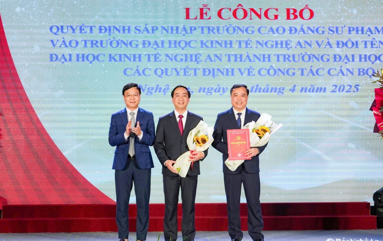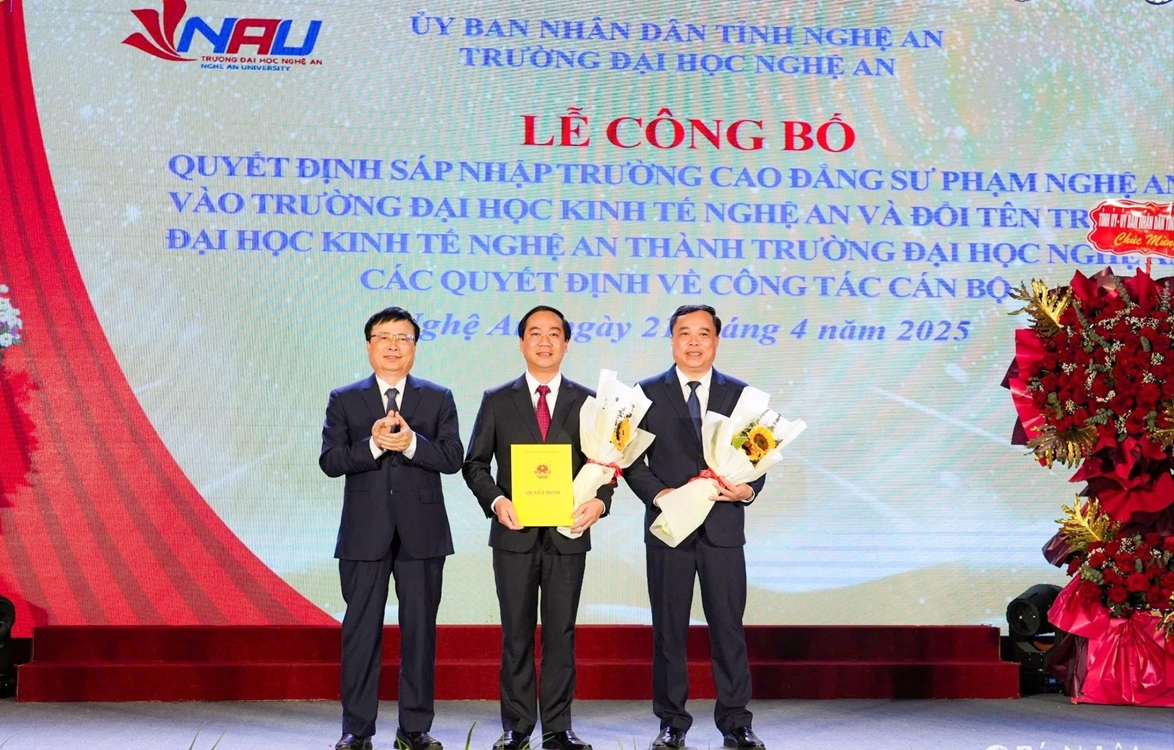 Chiều ngày 21/4/2025, trong không khí trang trọng và phấn khởi, tại Trường Đại học Nghệ An đã diễn ra Lễ công bố Quyết định sáp nhập Trường Cao đẳng Sư phạm Nghệ An vào Trường Đại học Kinh tế Nghệ An và đổi tên Trường đại học Kinh tế Nghệ An thành Trường Đại học Nghệ An. Đây là dấu mốc lịch sử, đánh dấu sự chuyển mình mạnh mẽ của nhà trường trong hành trình phát triển và hội nhập quốc tế.