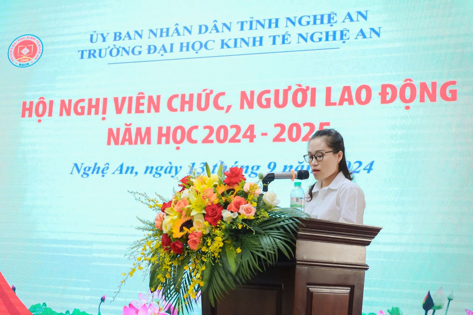Tại Hội nghị, TS. Nguyễn Ngọc Hiếu cũng đã trình bày báo cáo Tổng kết công tác năm học 2023 - 2024 và phương hướng nhiệm vụ năm học 2024 - 2025. Theo đó, năm học 2023 - 2024 Trường Đại học Kinh tế Nghệ An đã hoàn thành tốt các nhiệm vụ trong năm học, trong đó có công tác tuyển sinh - đào tạo, hoạt động khoa học công nghệ, hợp tác quốc tế, khảo thí và đảm bảo chất lượng, quản lý sinh viên, hoạt động đoàn thể... Nhằm phát huy những kết quả đã đạt được và khắc phục những hạn chế trong năm học 2023 - 2024, Nhà trường đã đề ra phương hướng, mục tiêu cụ thể và các nhiệm vụ chủ yếu về công tác chính trị - tư tưởng, quản trị trường đại học, Hội đồng trường; công tác tuyển sinh, đào tạo, nghiên cứu khoa học, hợp tác quốc tế, quản lý chất lượng, công tác tổ chức cán bộ, công tác thanh tra, pháp chế, thi đua khen thưởng, công tác tài chính, công tác quản lý sinh viên và một số công tác khác trong năm học 2024 - 2025.