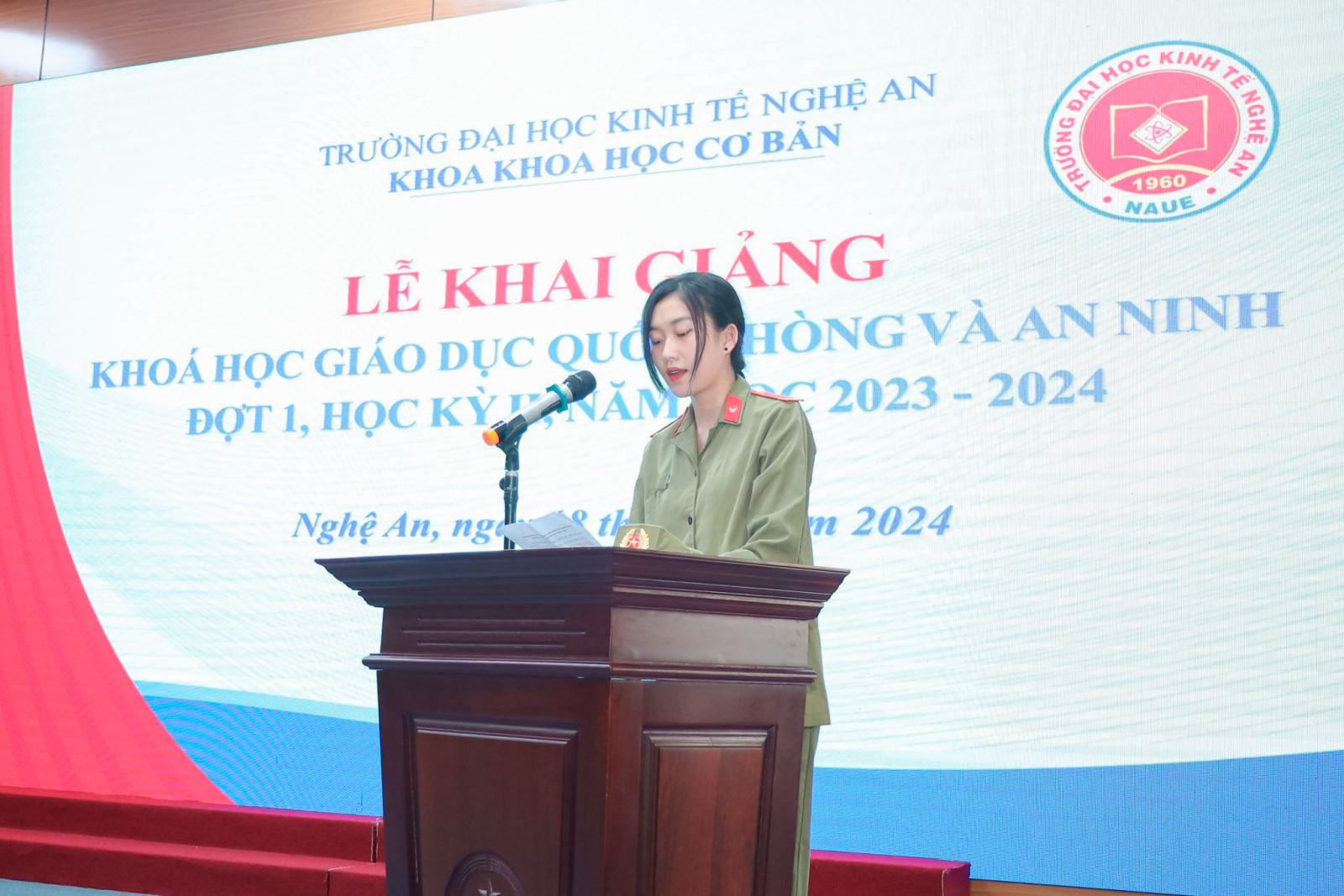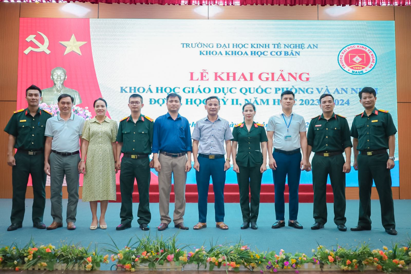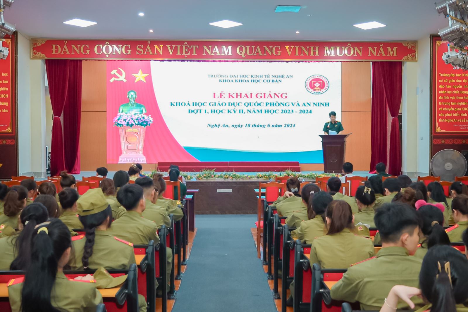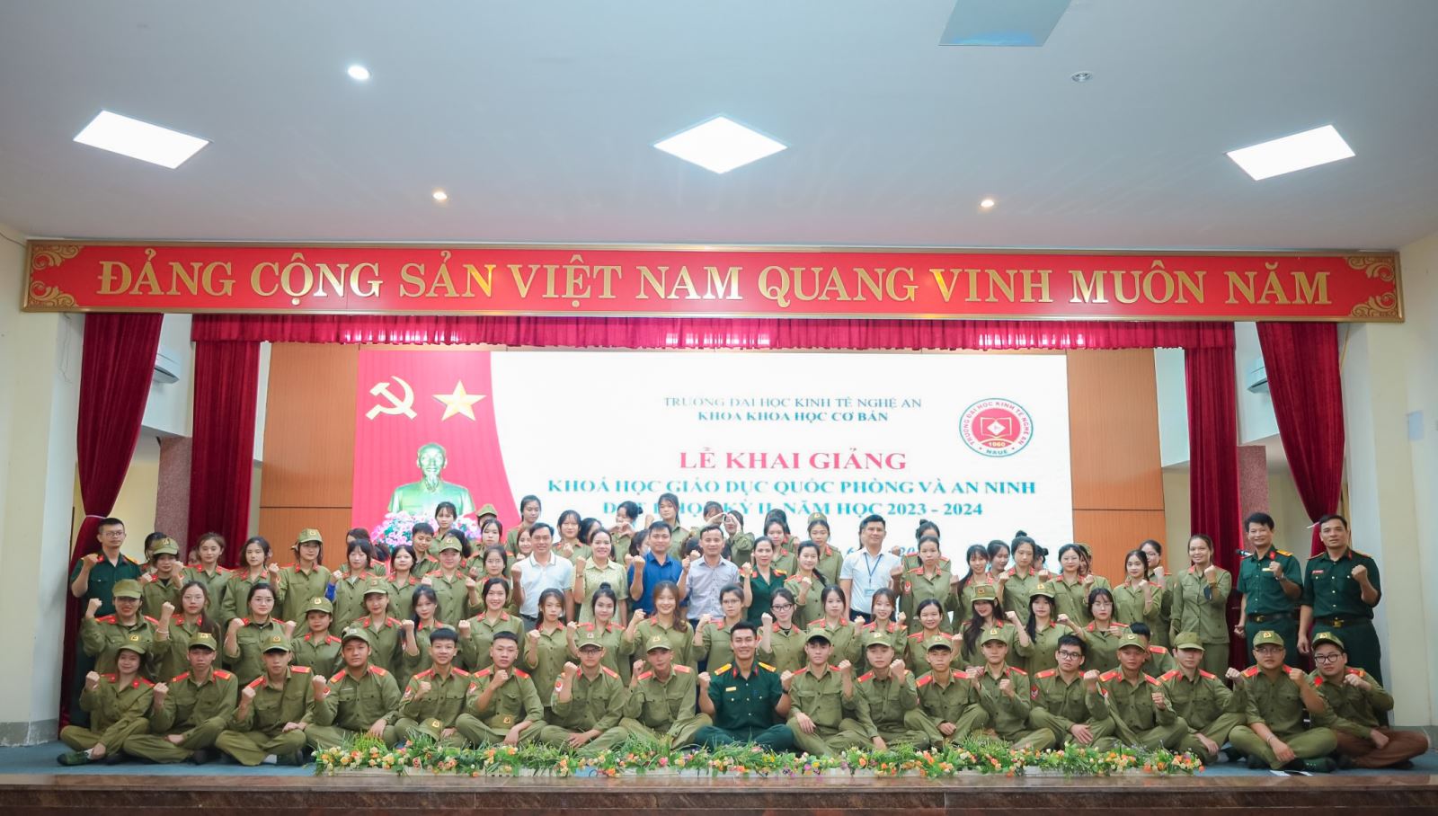 Thực hiện kế hoạch đào tạo năm học 2023-2024, chiều ngày 18/6/2024 tại Trường Đại học Kinh tế Nghệ An long trọng tổ chức lễ khai mạc khóa học giáo dục quốc phòng và an ninh cho sinh viên khóa 9 của Trường.