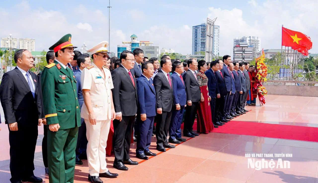 Chiều ngày 1/10/2025, trước giờ khai mạc Đại hội đại biểu Đảng bộ tỉnh Nghệ An lần thứ XX, nhiệm kỳ 2025 – 2030, đoàn đại biểu Ban Chấp hành Đảng bộ tỉnh khóa XIX cùng trưởng các đoàn đại biểu đã tổ chức lễ dâng hoa, báo công trước Tượng đài Bác Hồ tại Quảng trường Hồ Chí Minh.