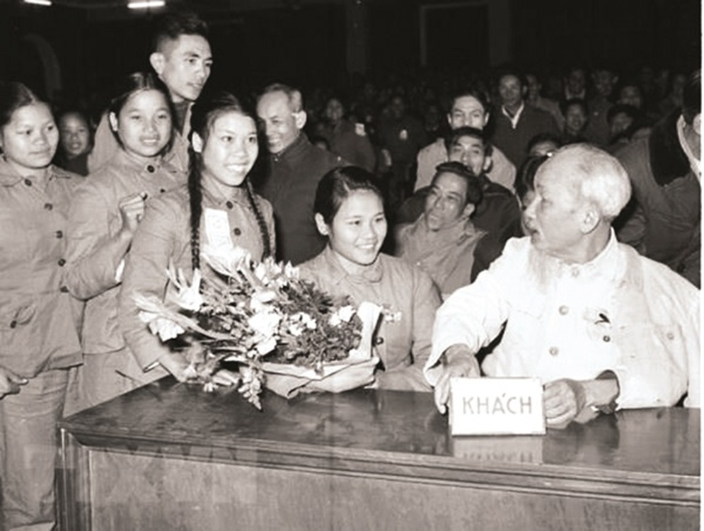 Chủ tịch Hồ Chí Minh nói chuyện với đại biểu thanh niên xung phong dự Đại hội Thanh niên xung phong chống Mỹ cứu nước toàn miền Bắc (tháng 1-1967)