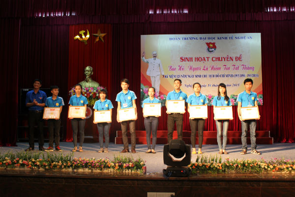 Thiết thực thi đua lập thành tích Chào mừng Đại hội Đảng bộ Trường Đại học Kinh tế Nghệ An lần thứ VI, nhiệm kỳ 2015 – 2020, Hướng tới kỷ niệm 125 năm ngày sinh Chủ tịch Hồ Chí Minh (19/05/1890 – 19/05/2015). Tối ngày 14/5/2015, Đoàn trường Đại học Kinh tế Nghệ An long trọng tổ chức buổi sinh hoạt chuyên đề “Bác Hồ - Người là niềm tin tất thắng”.