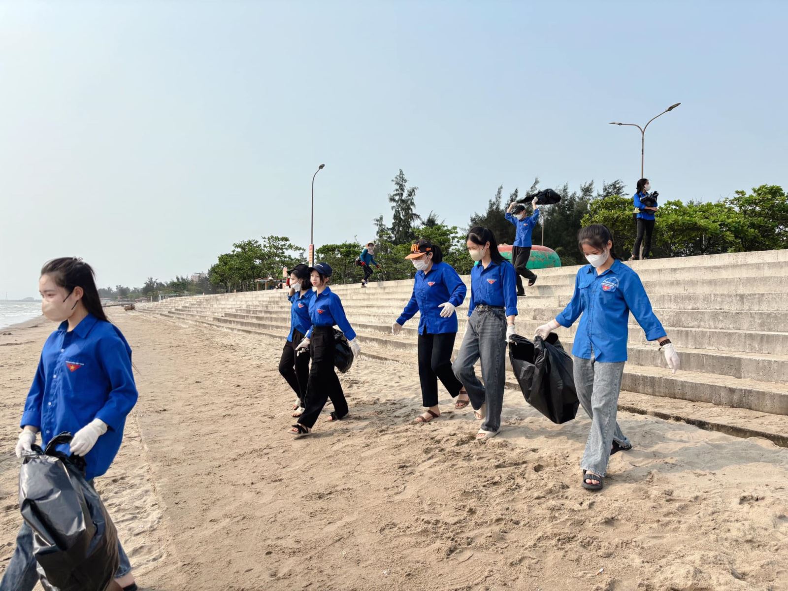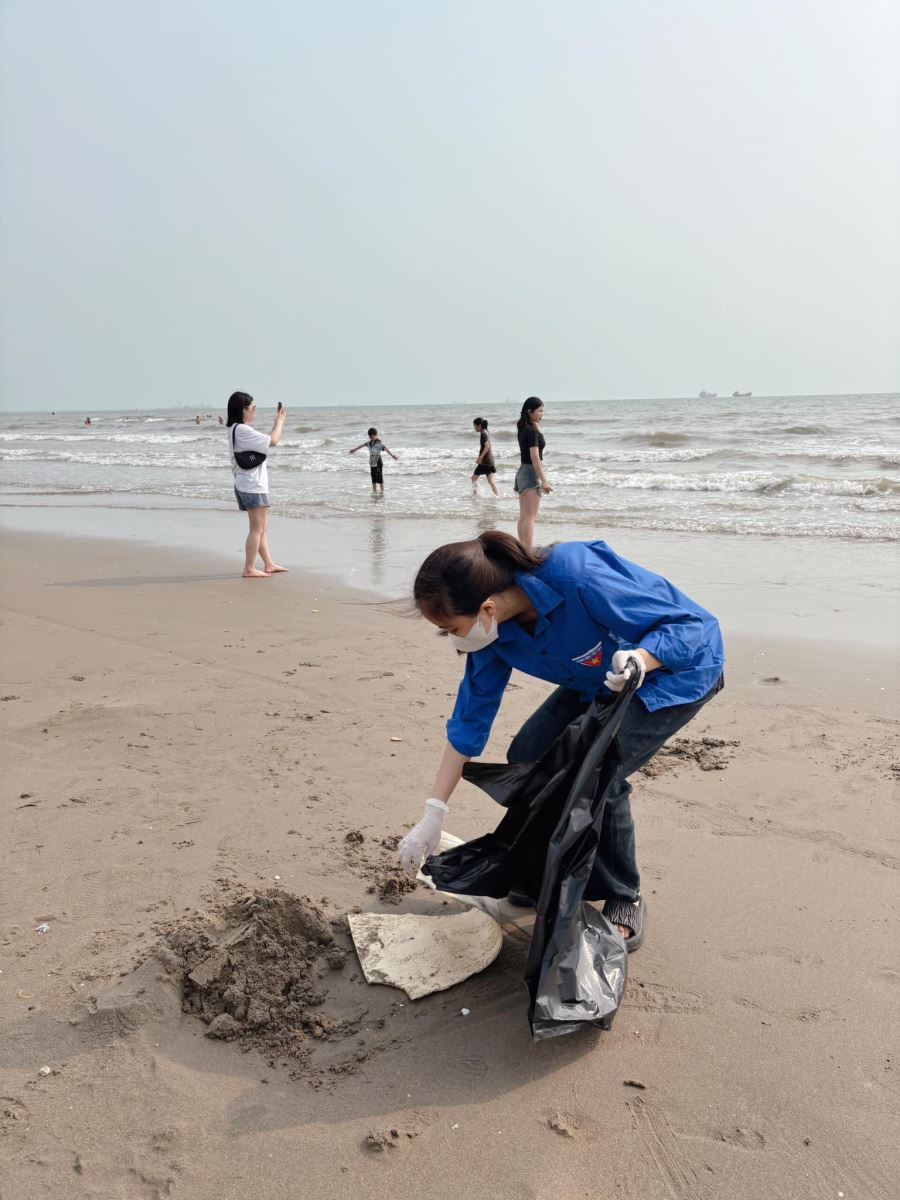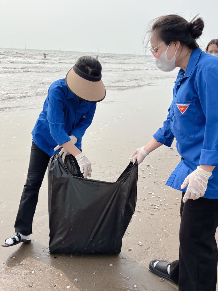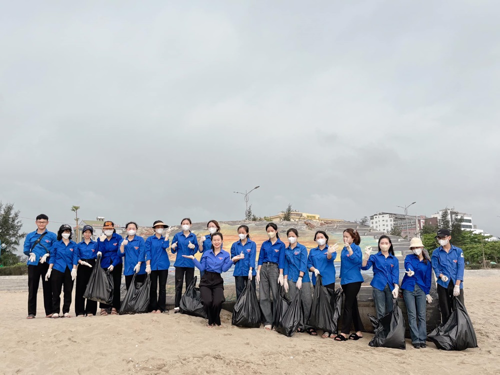 Đội tình nguyện viên đã tổ chức dọn vệ sinh tại bãi biển nhằm mục đích xây dựng một môi trường Xanh-Sạch-Đẹp