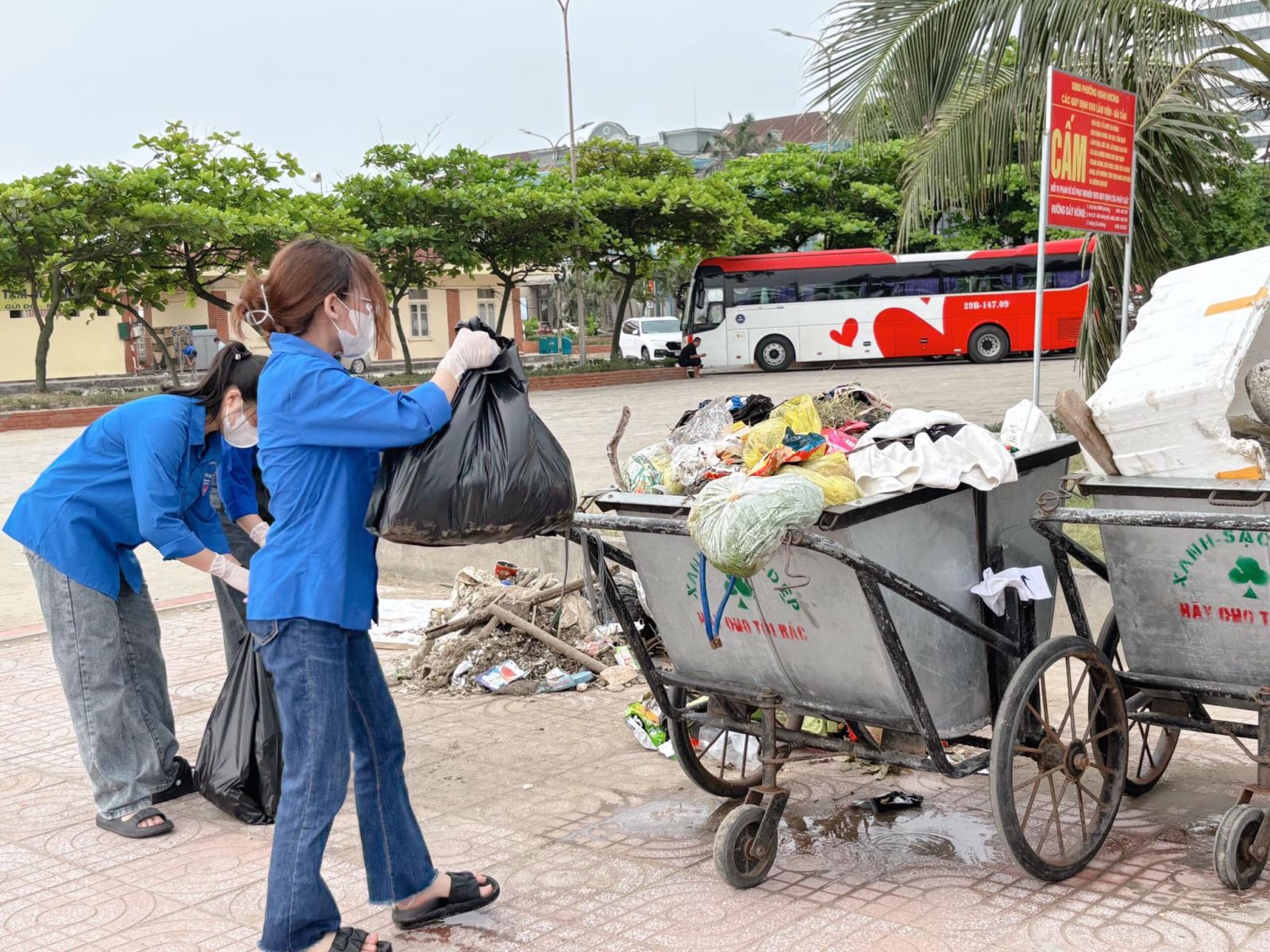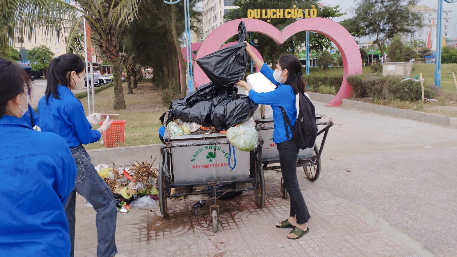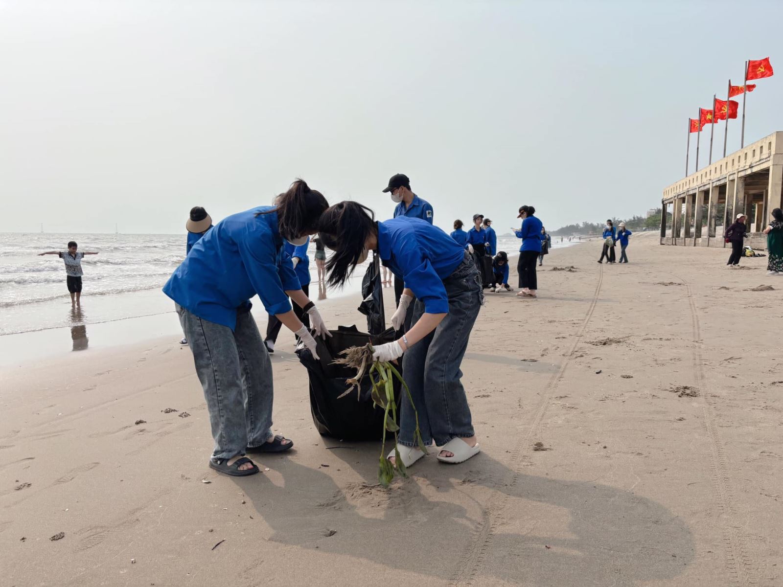 Đội tình nguyện viên đã tổ chức dọn vệ sinh tại bãi biển nhằm mục đích xây dựng một môi trường Xanh-Sạch-Đẹp