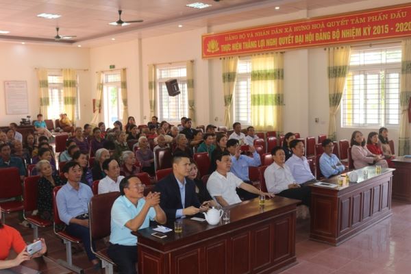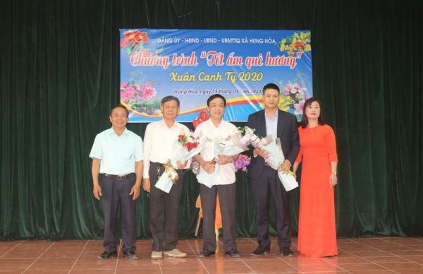 Đại diện UBND-UBMTTQ xã Hưng Hòa tặng hoa cho các cơ quan, doanh nghiệp, các nhà hảo tâm