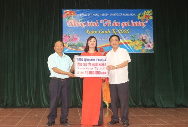 Thực hiện thư kêu gọi ủng hộ, giúp đỡ người nghèo đón Tết Nguyên đán Canh Tý 2020 của đồng chí Bí thư Tỉnh ủy, Công văn số 2637-CV/Th.U ngày 18/12/2019 của Ban thường vụ thành ủy Vinh về việc thực hiện Chương trình “Tết vì người nghèo” năm Canh Tý 2020; cũng như tri ân người có công với cách mạng, phụng dưỡng bà Mẹ Việt Nam anh hùng. Tập thể, cán bộ, CNVC trường Đại học Kinh tế Nghệ An đã đăng ký ủng hộ chương trình “Tết vì người nghèo – Canh Tý 2020 với số tiền 43.000.000 triệu đồng, nhà trường đã tặng quà tại các địa điểm cụ thể như sau: